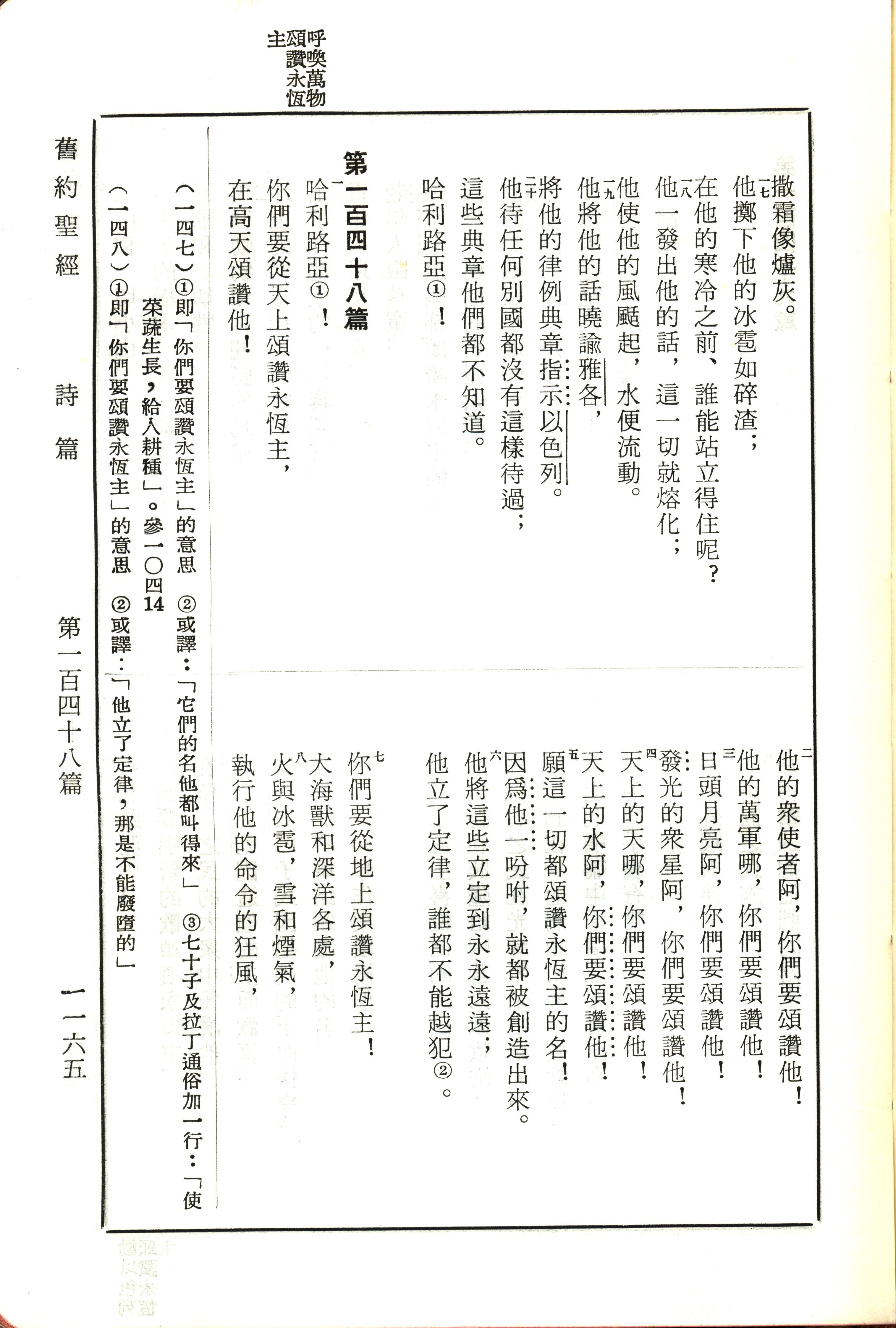 1970年新旧约全书(吕振中译本) 诗篇 147 章 17 节到 148 章 8 节