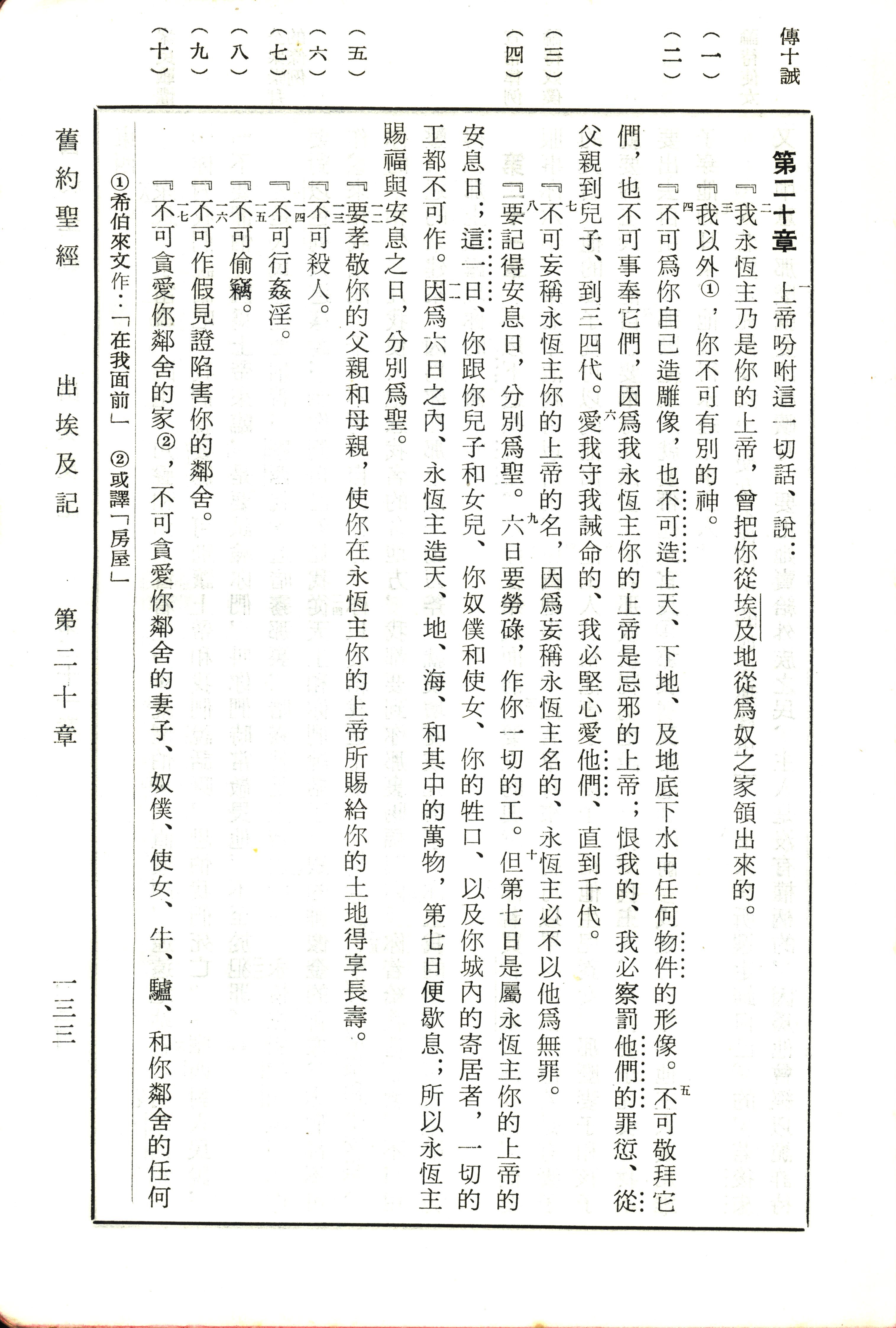 1970年新旧约全书(吕振中译本) 出埃及记 20 章 1 节到 20 章 17 节