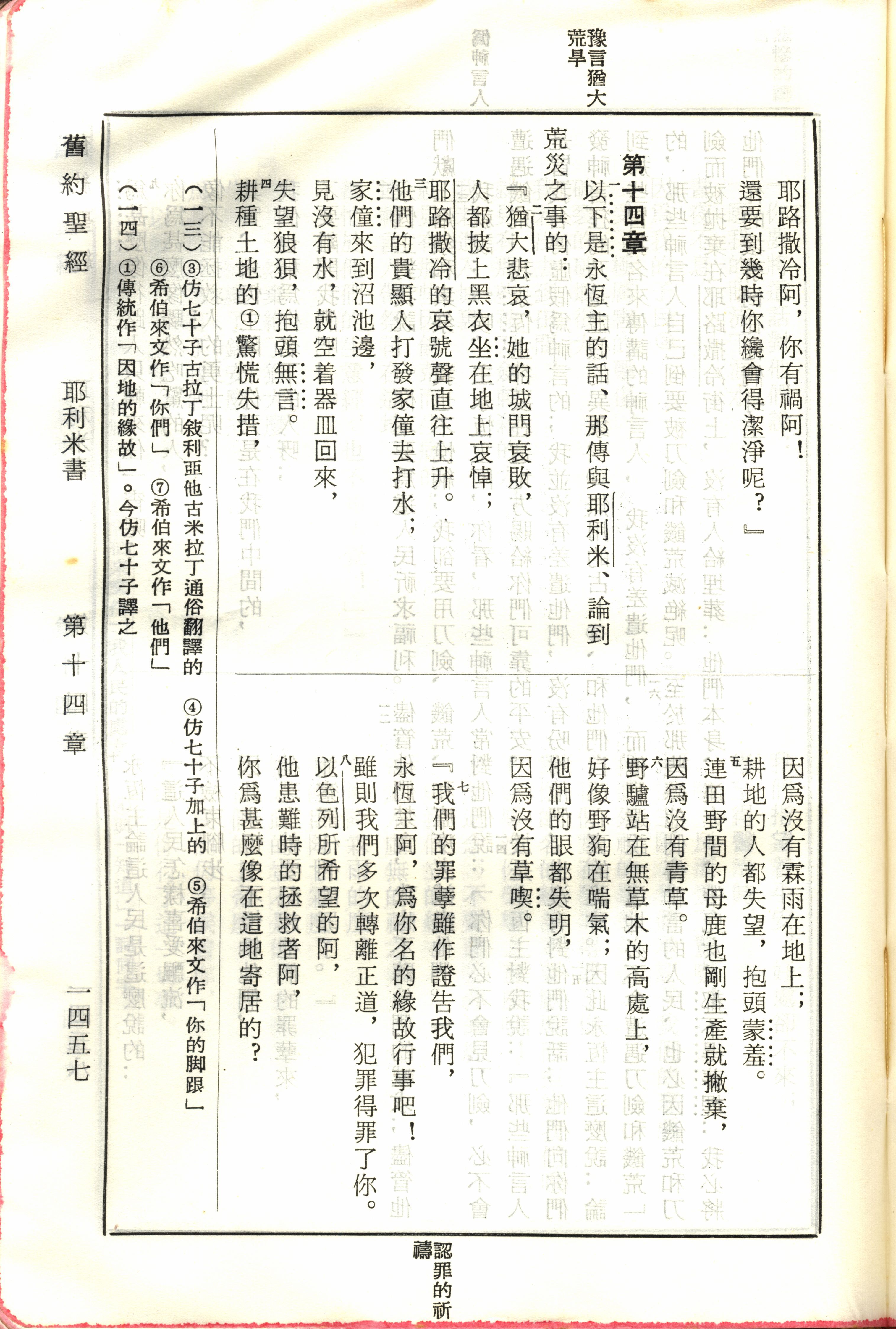 1970年新旧约全书(吕振中译本) 耶利米书 14 章 1 节到 14 章 8 节