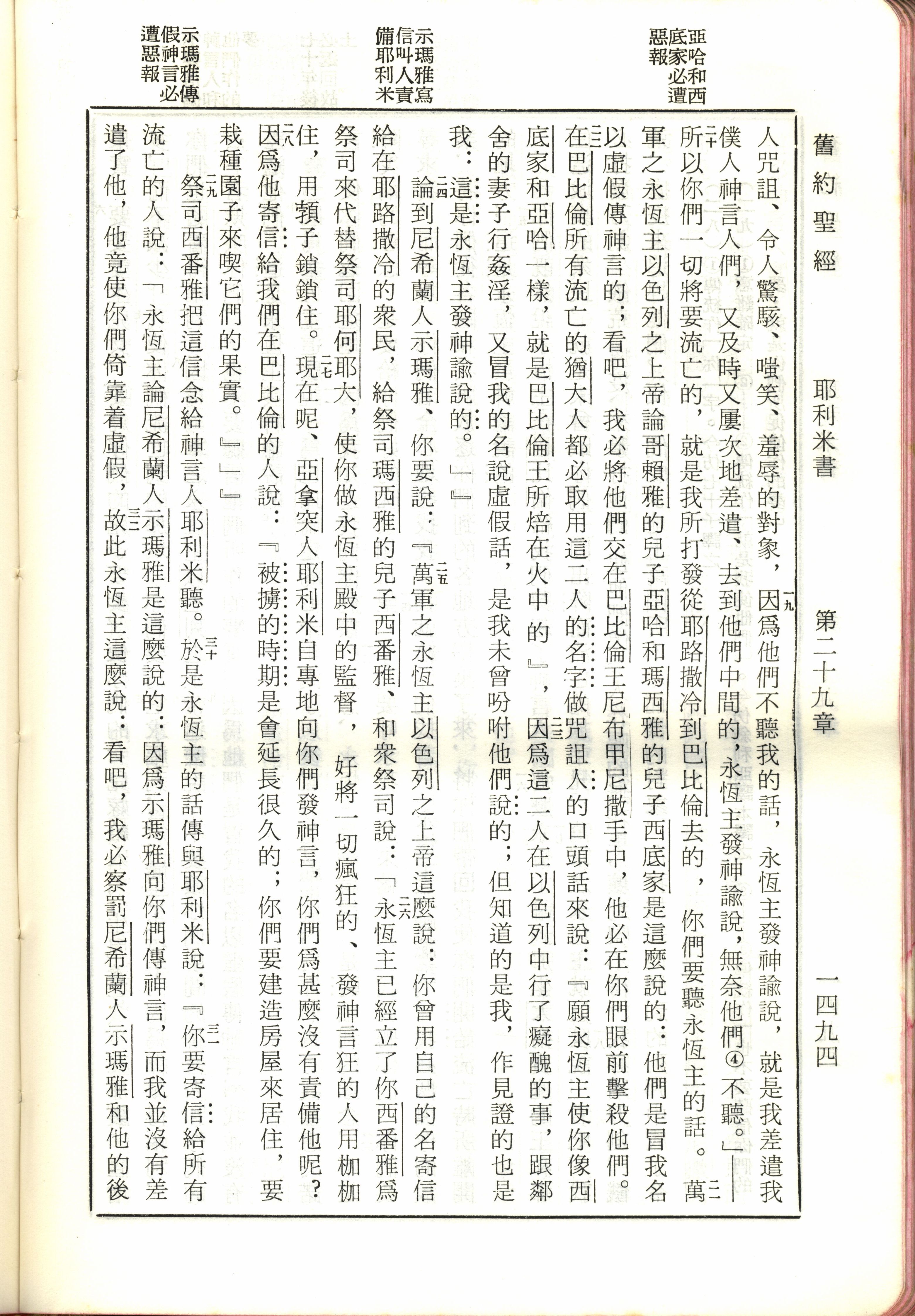 1970年新旧约全书(吕振中译本) 耶利米书 29 章 19 节到 29 章 32 节
