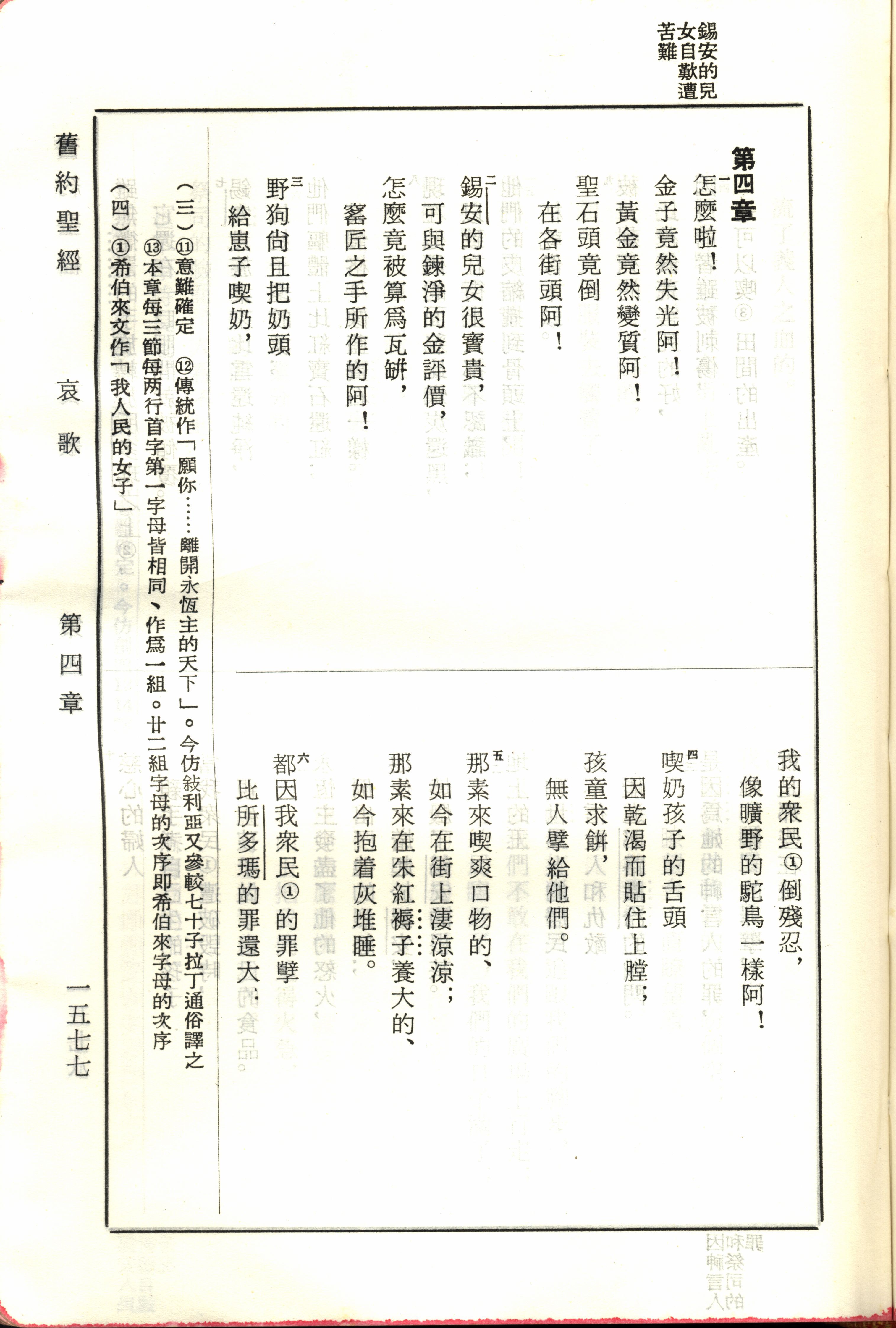 1970年新旧约全书(吕振中译本) 耶利米哀歌 4 章 1 节到 4 章 6 节