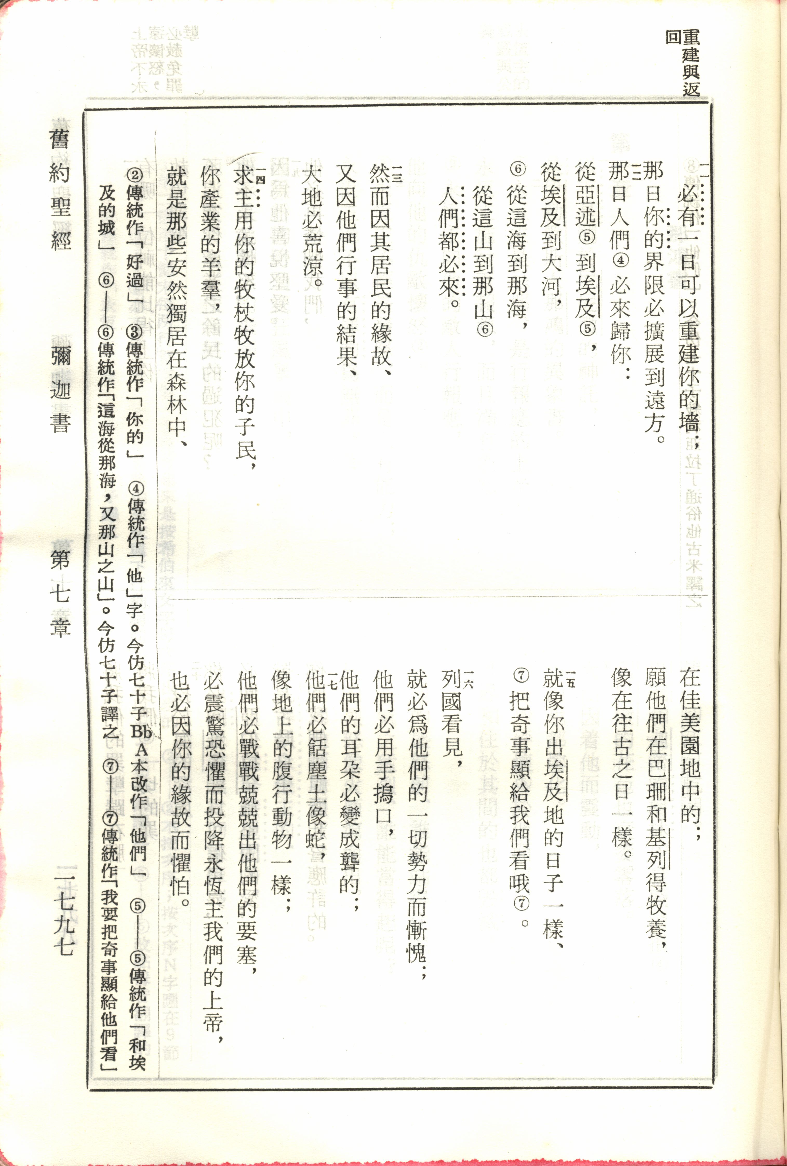 1970年新旧约全书(吕振中译本) 弥迦书 7 章 11 节到 7 章 17 节