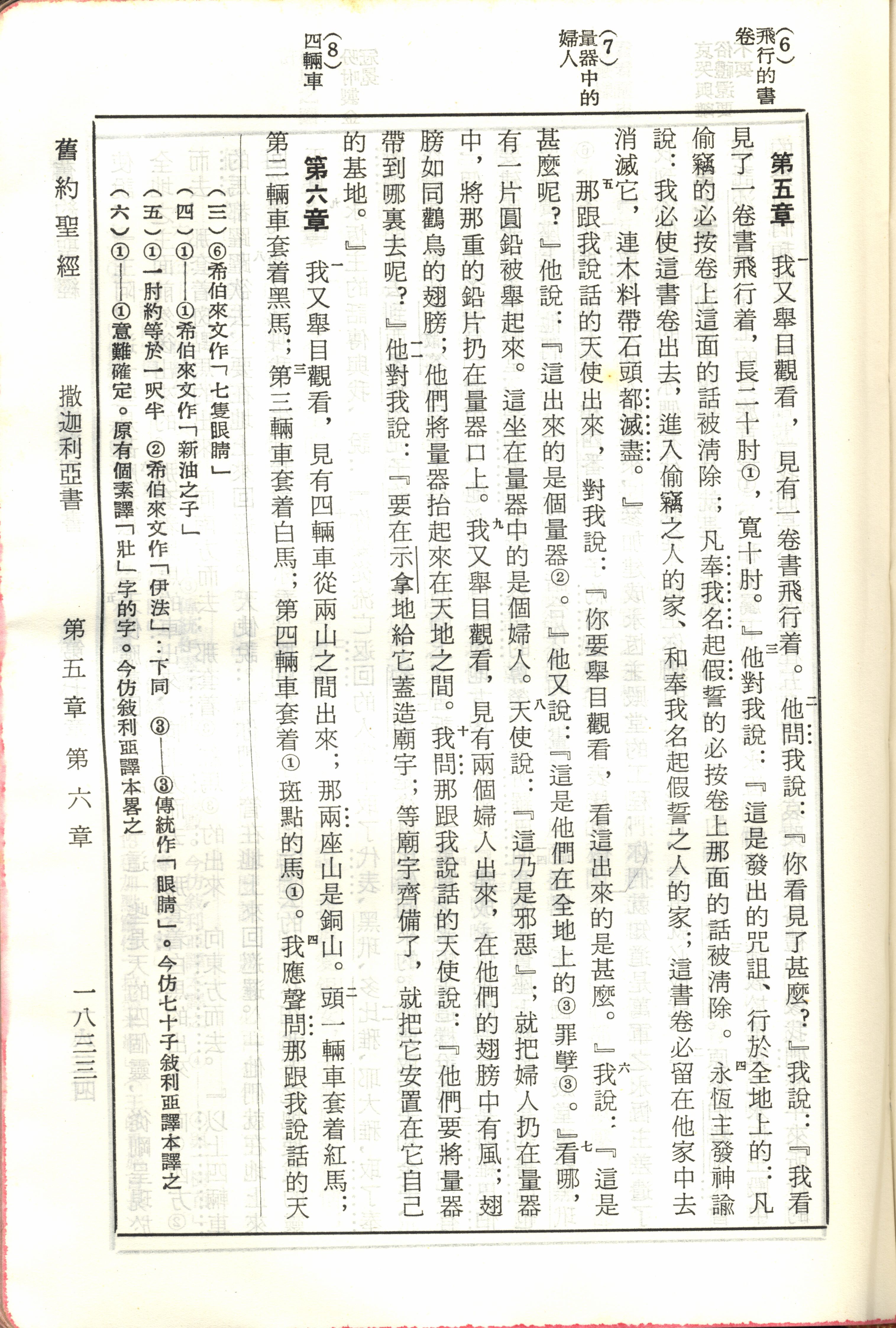 1970年新旧约全书(吕振中译本) 撒迦利亚书 5 章 1 节到 6 章 4 节