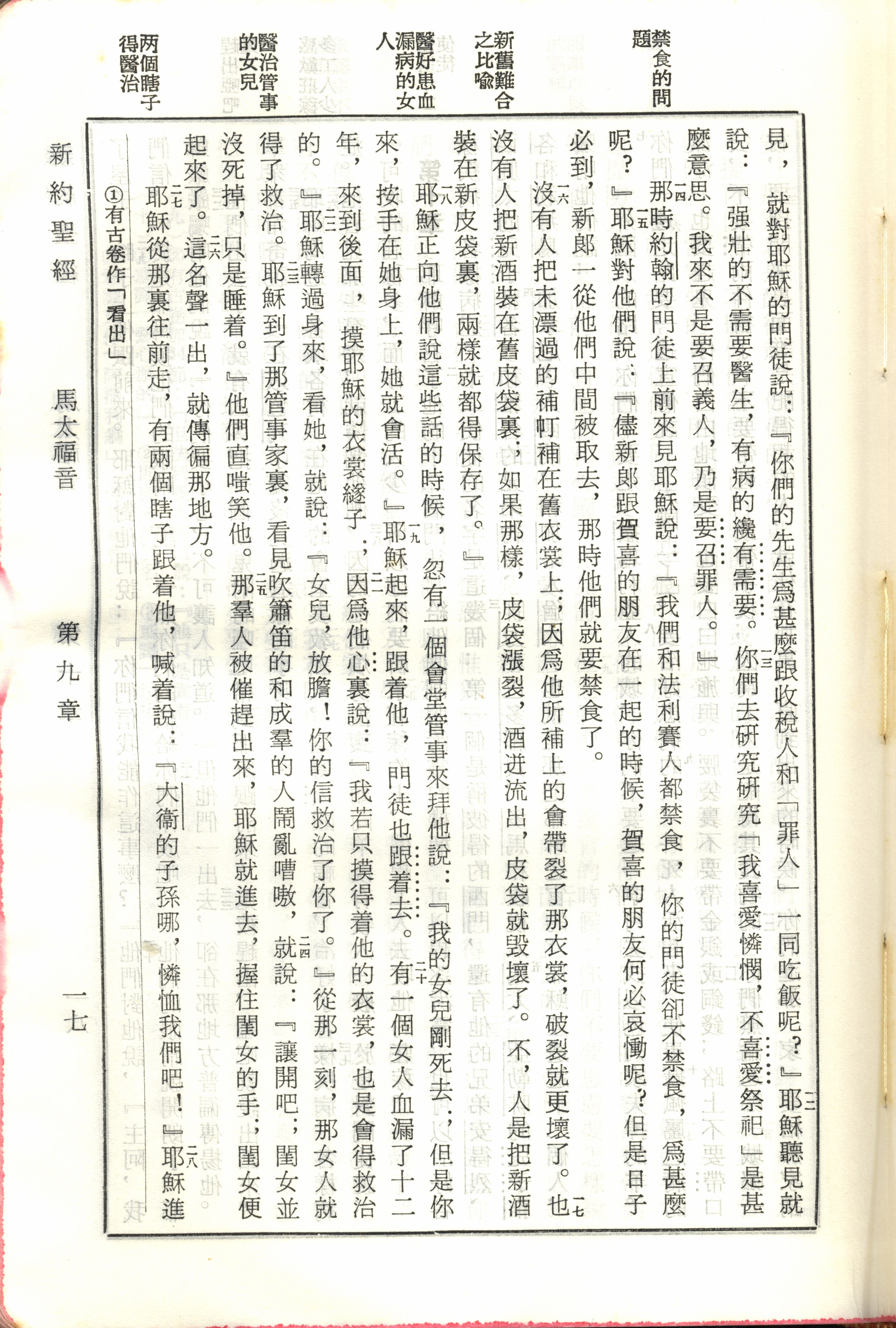 1970年新旧约全书(吕振中译本) 马太福音 9 章 12 节到 9 章 28 节