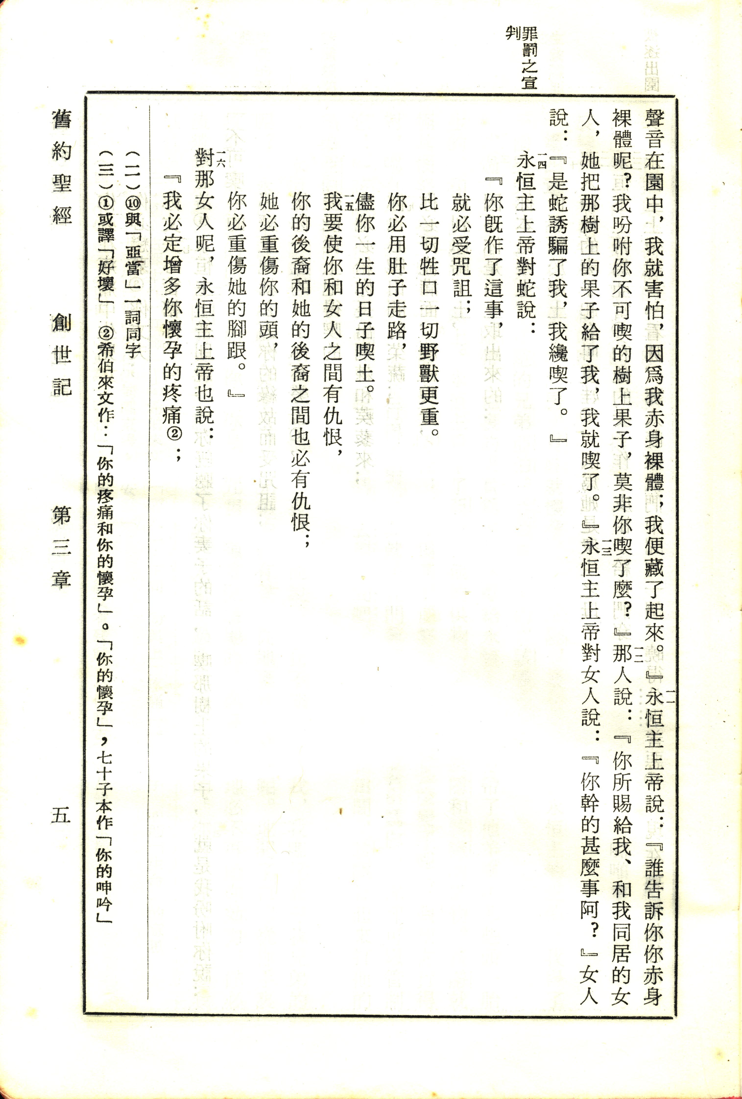 1970年新旧约全书(吕振中译本) 创世记 3 章 11 节到 3 章 16 节