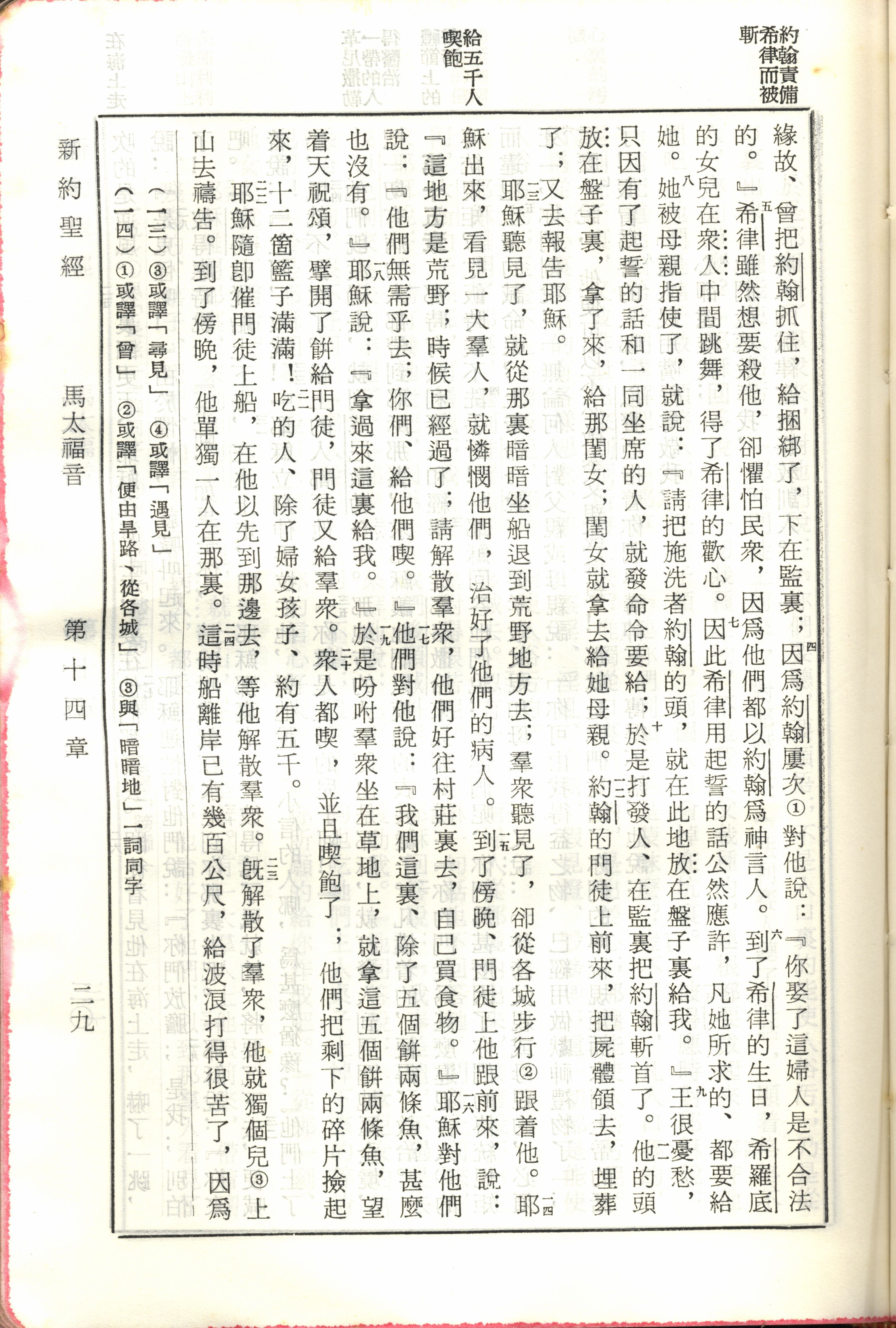 1970年新旧约全书(吕振中译本) 马太福音 14 章 4 节到 14 章 24 节