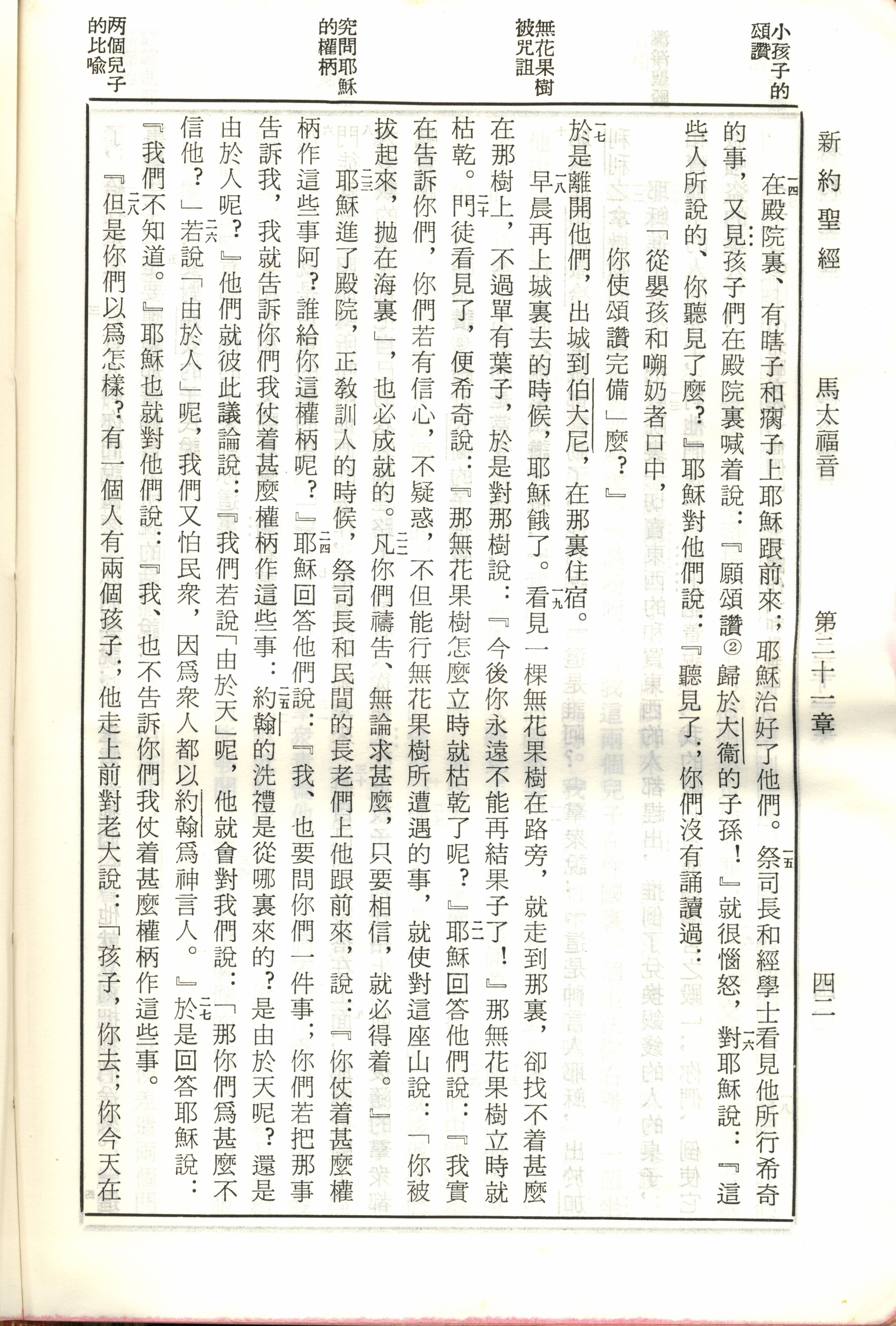 1970年新旧约全书(吕振中译本) 马太福音 21 章 14 节到 21 章 28 节