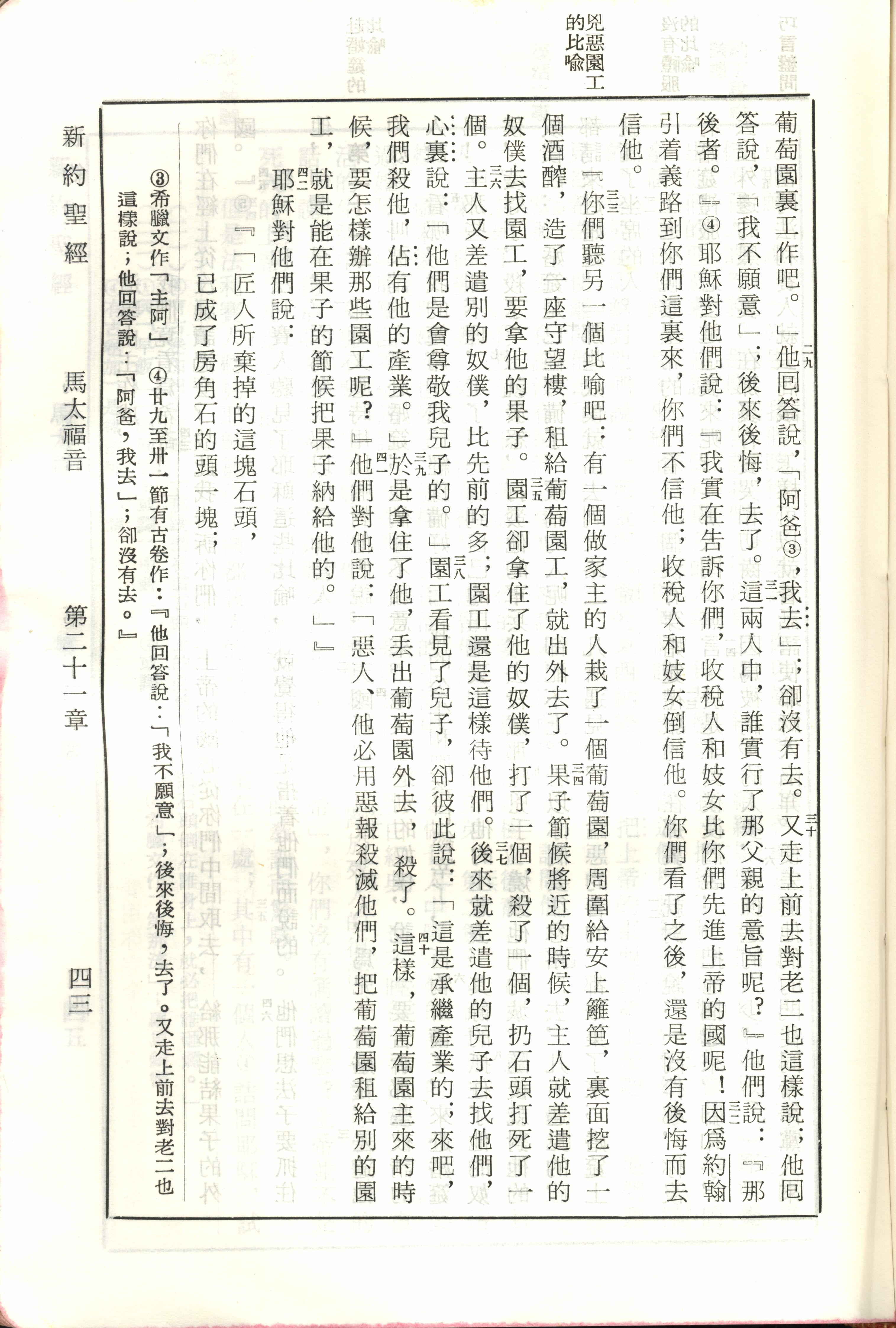 1970年新旧约全书(吕振中译本) 马太福音 21 章 29 节到 21 章 42 节