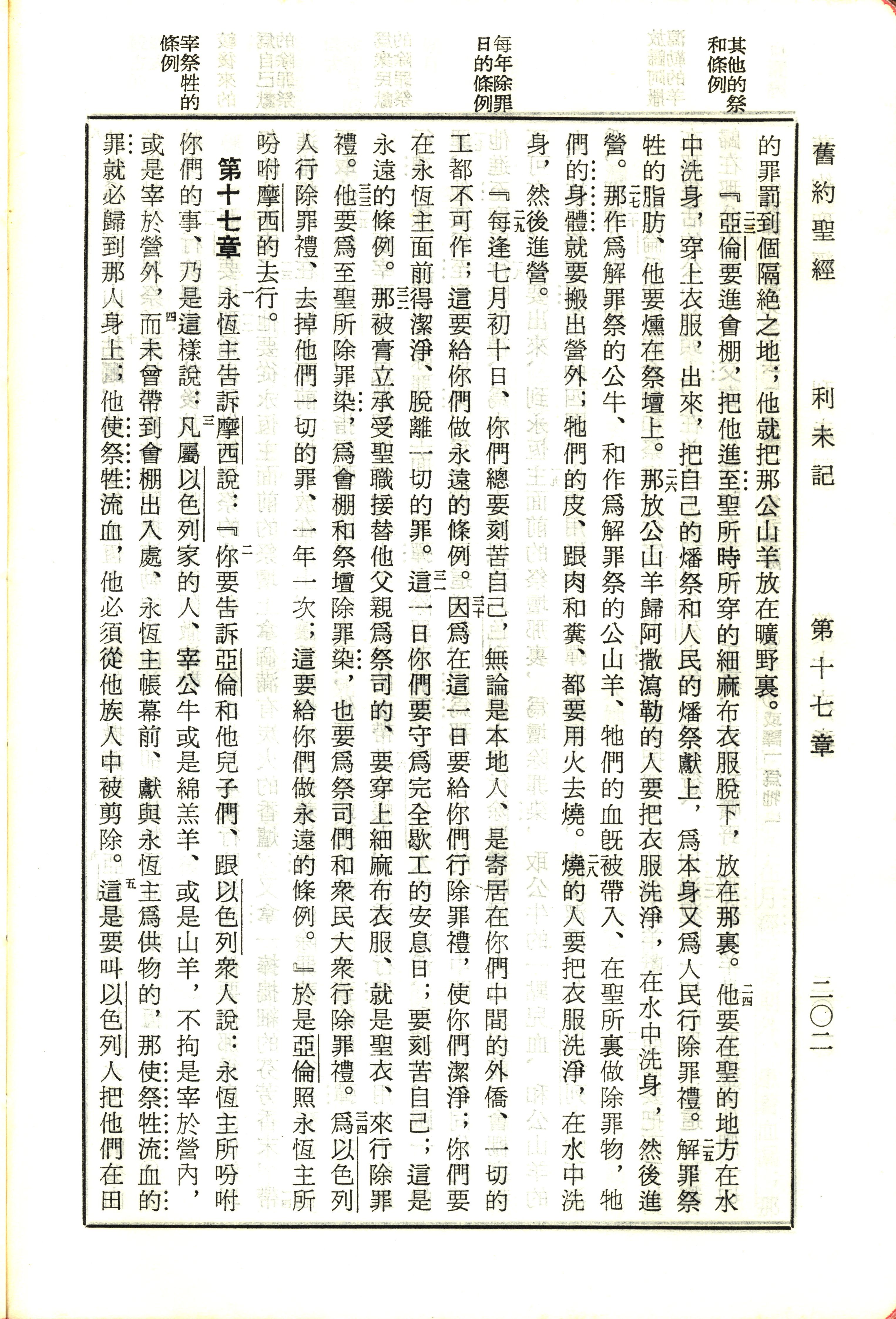 1970年新旧约全书(吕振中译本) 利未记 16 章 23 节到 17 章 5 节
