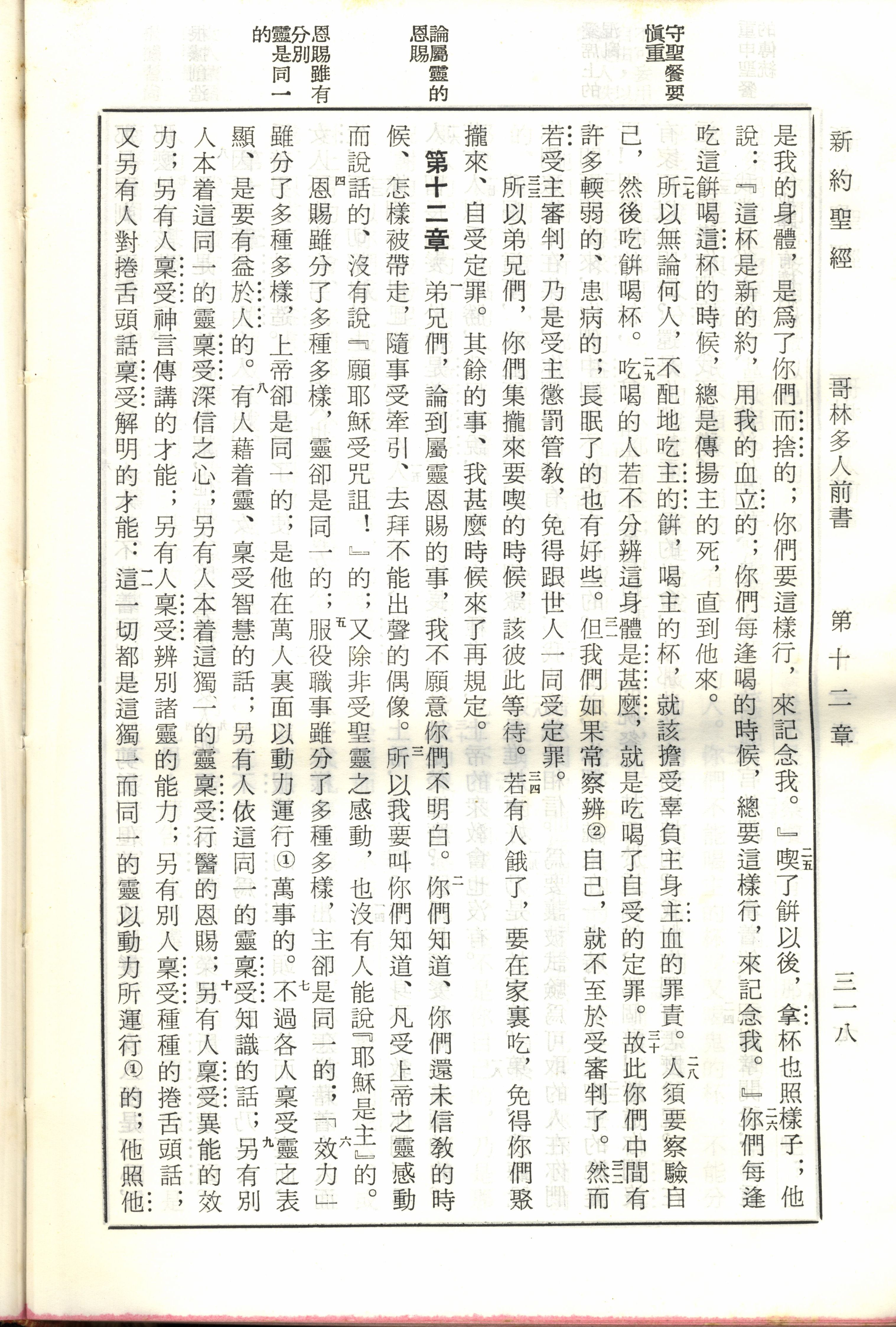 1970年新旧约全书(吕振中译本) 哥林多前书 11 章 25 节到 12 章 11 节