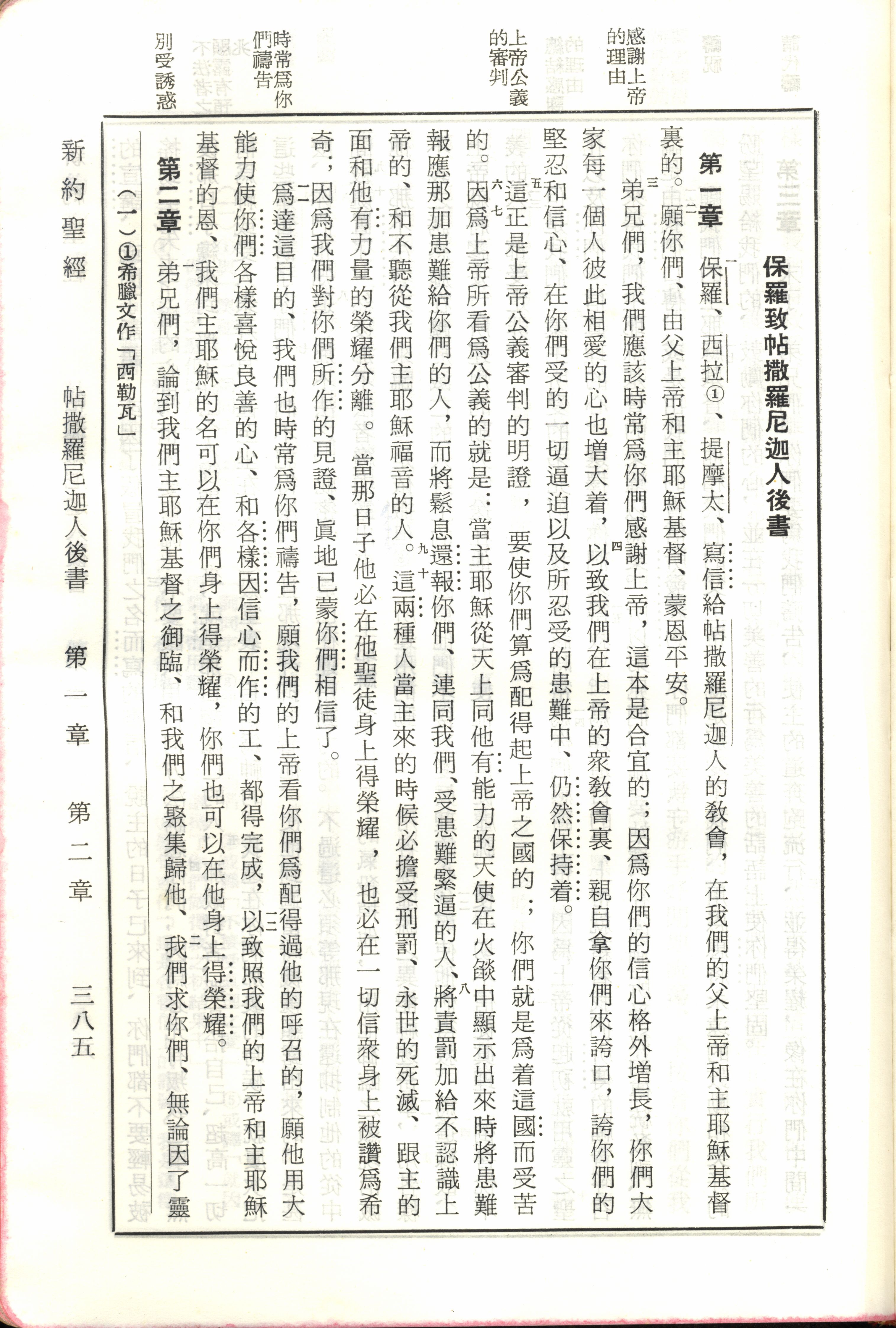 1970年新旧约全书(吕振中译本) 帖撒罗尼迦后书 1 章 1 节到 2 章 2 节