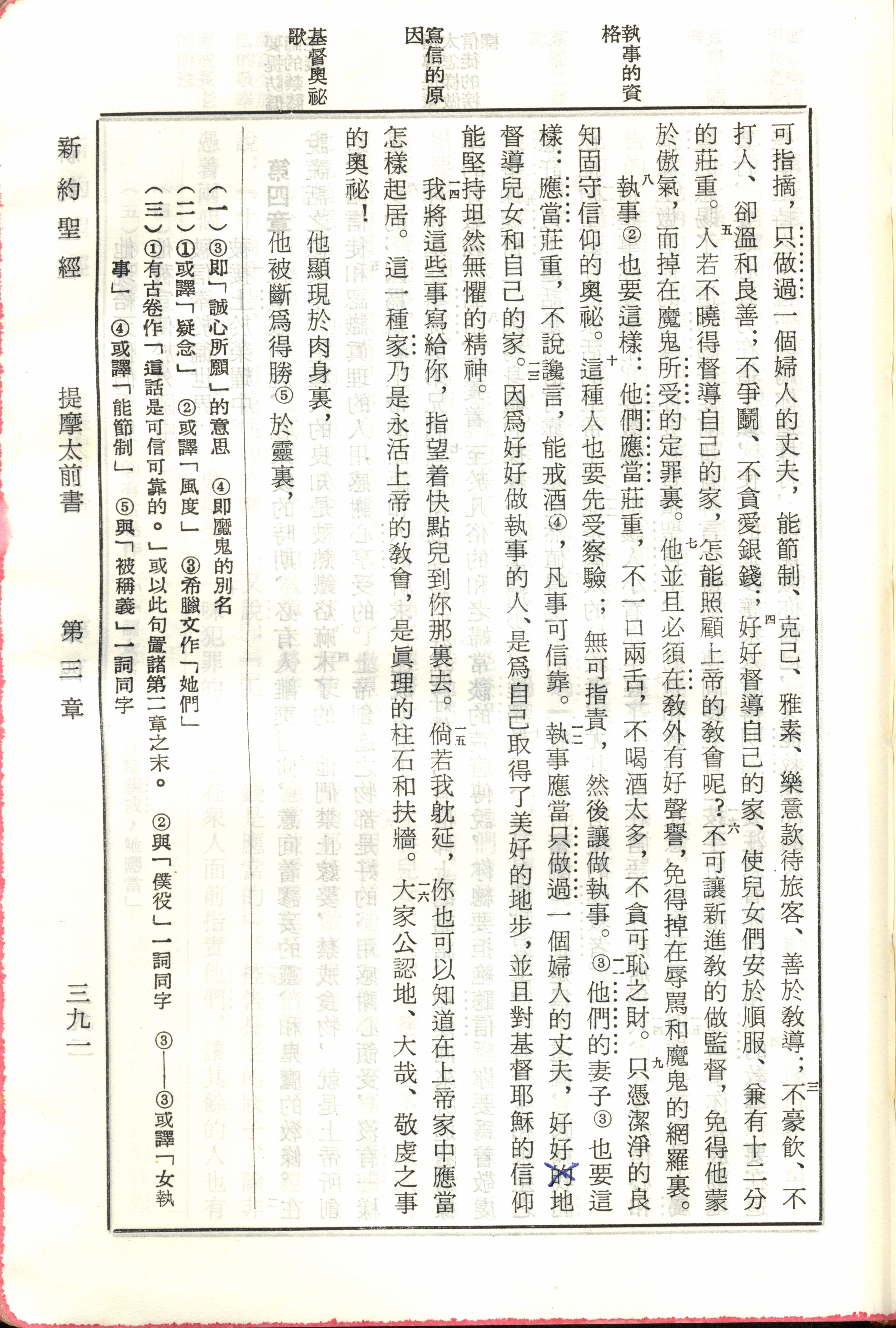 1970年新旧约全书(吕振中译本) 提摩太前书 3 章 3 节到 3 章 16 节