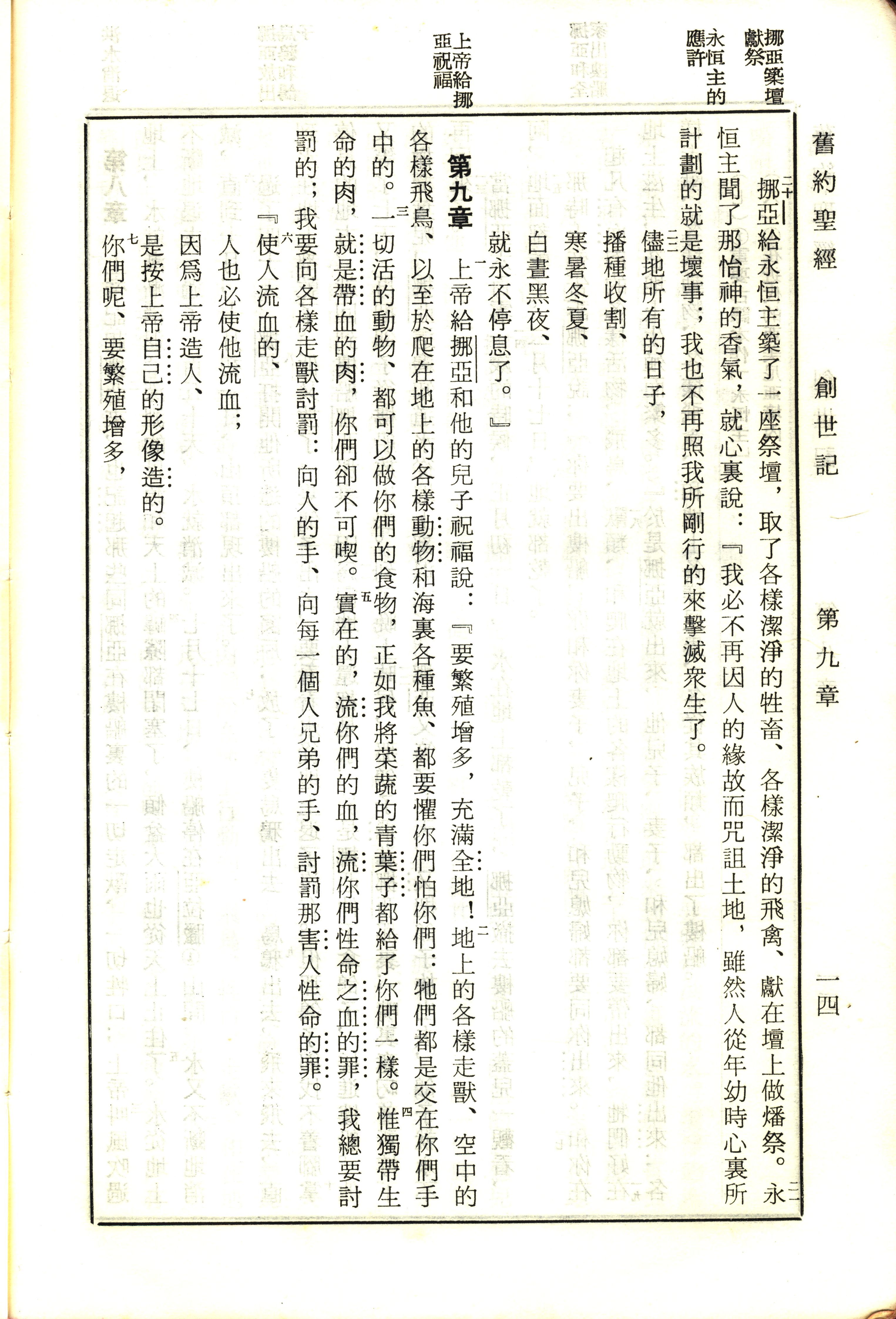 1970年新旧约全书(吕振中译本) 创世记 8 章 20 节到 9 章 7 节
