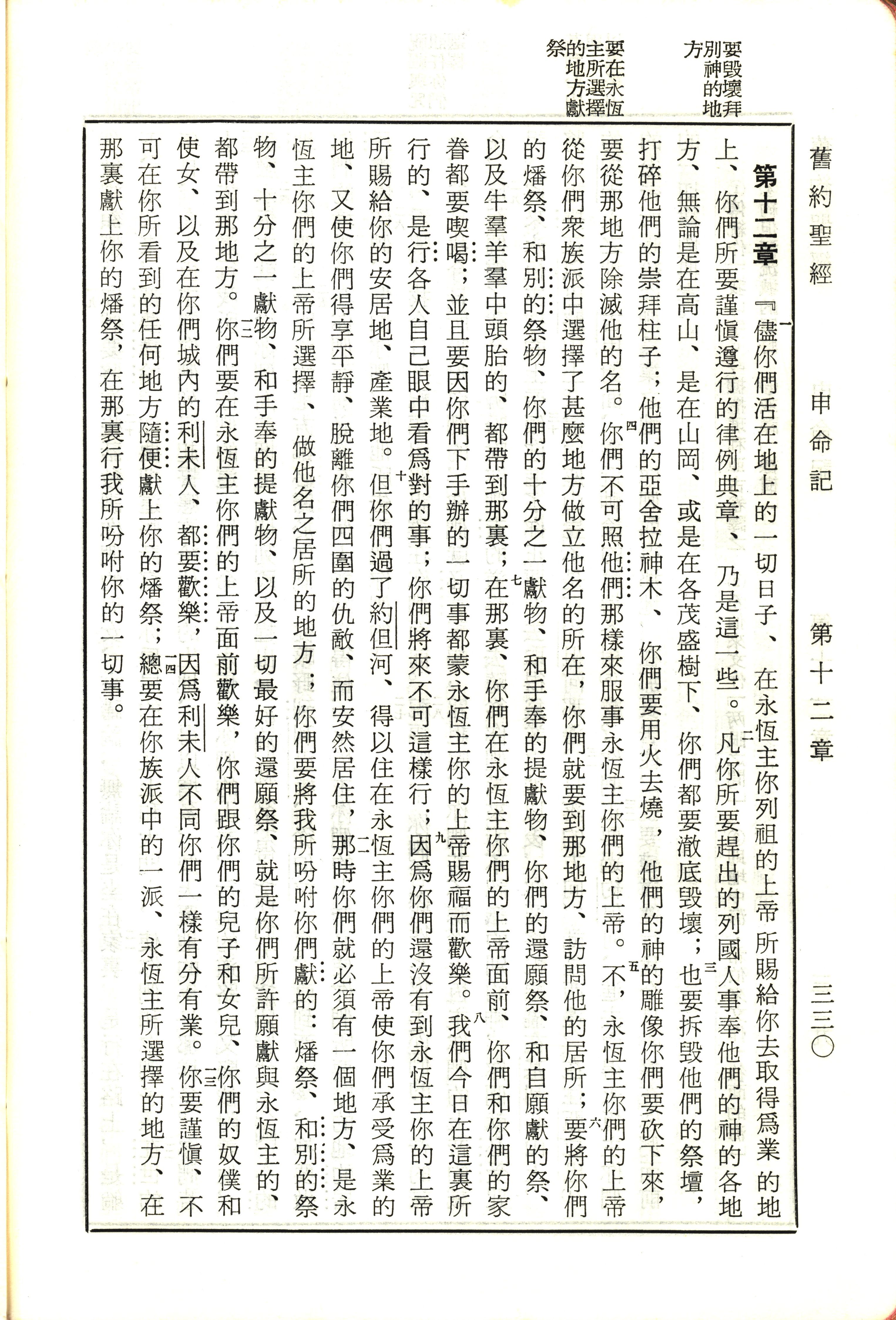 1970年新旧约全书(吕振中译本) 申命记 12 章 1 节到 12 章 14 节
