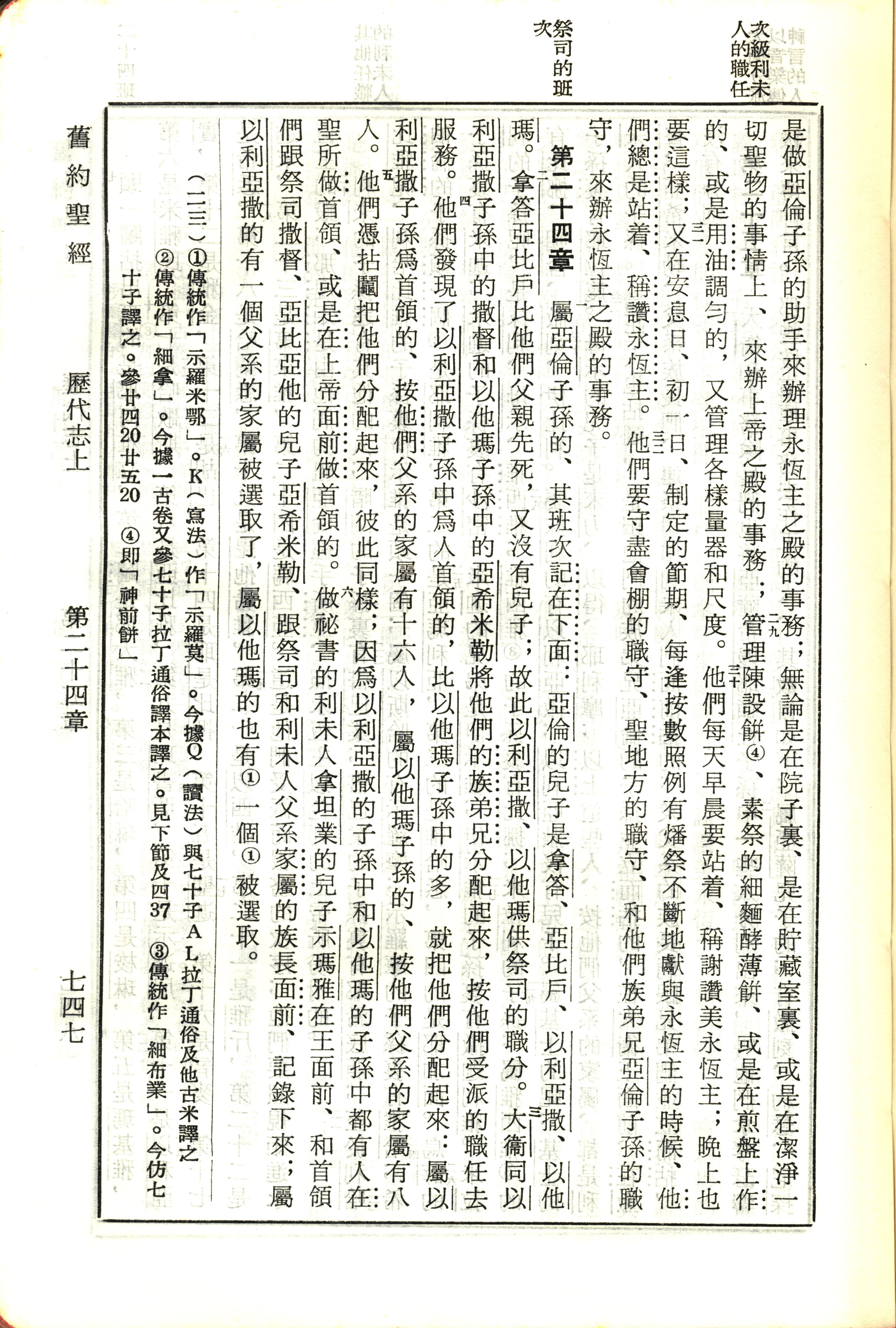 1970年新旧约全书(吕振中译本) 历代志上 23 章 29 节到 24 章 6 节