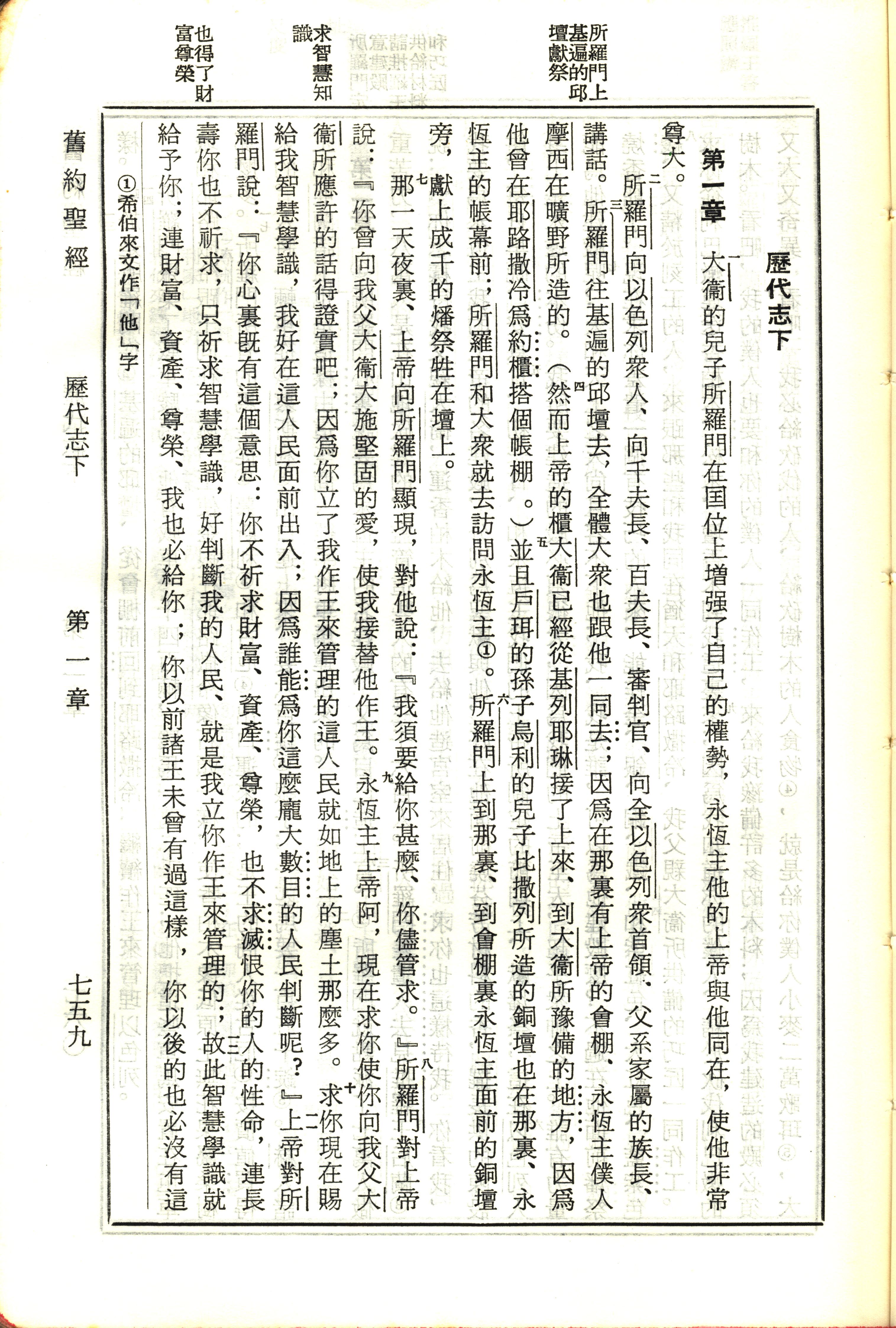 1970年新旧约全书(吕振中译本) 历代志下 1 章 1 节到 1 章 12 节