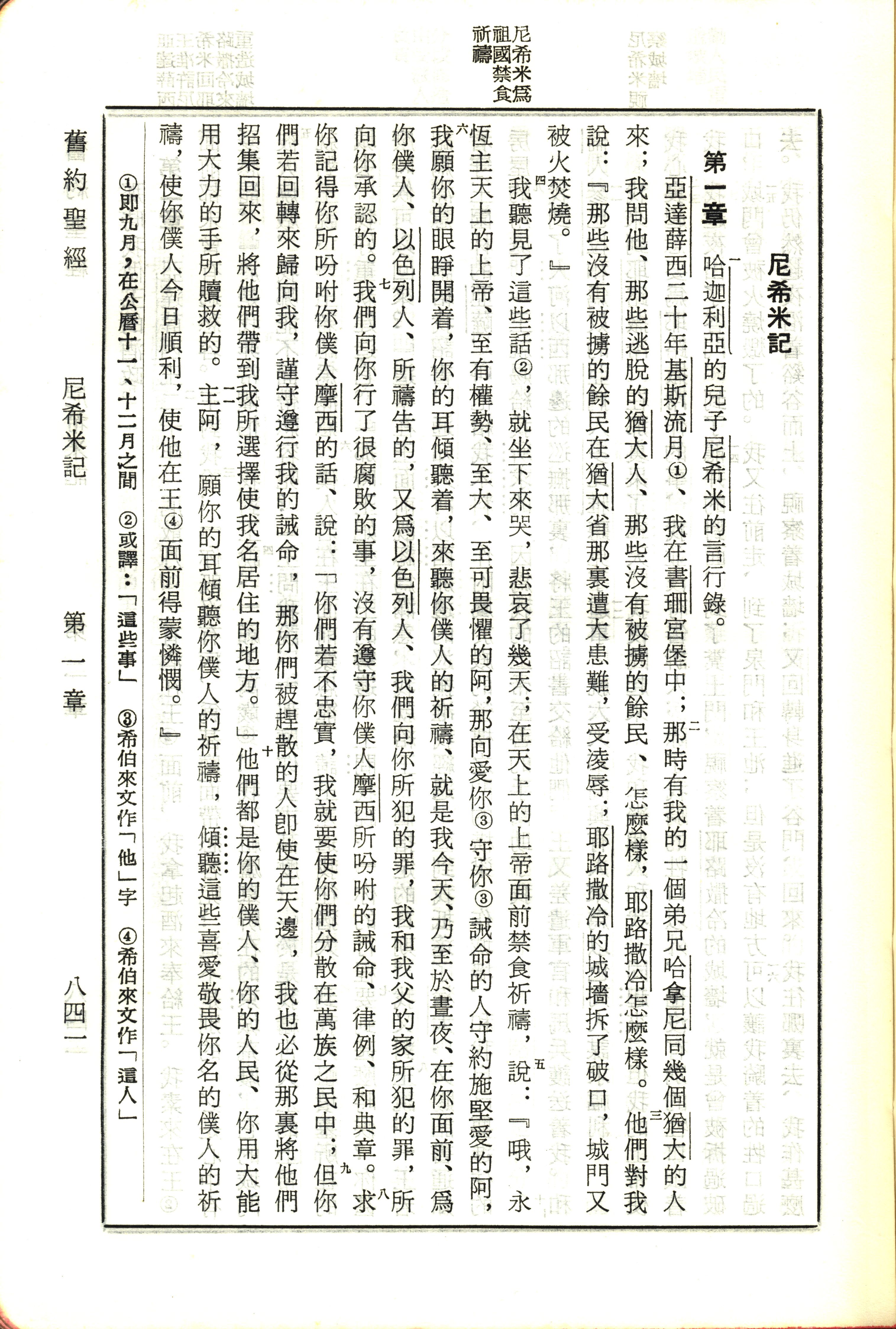 1970年新旧约全书(吕振中译本) 尼希米记 1 章 1 节到 1 章 11 节