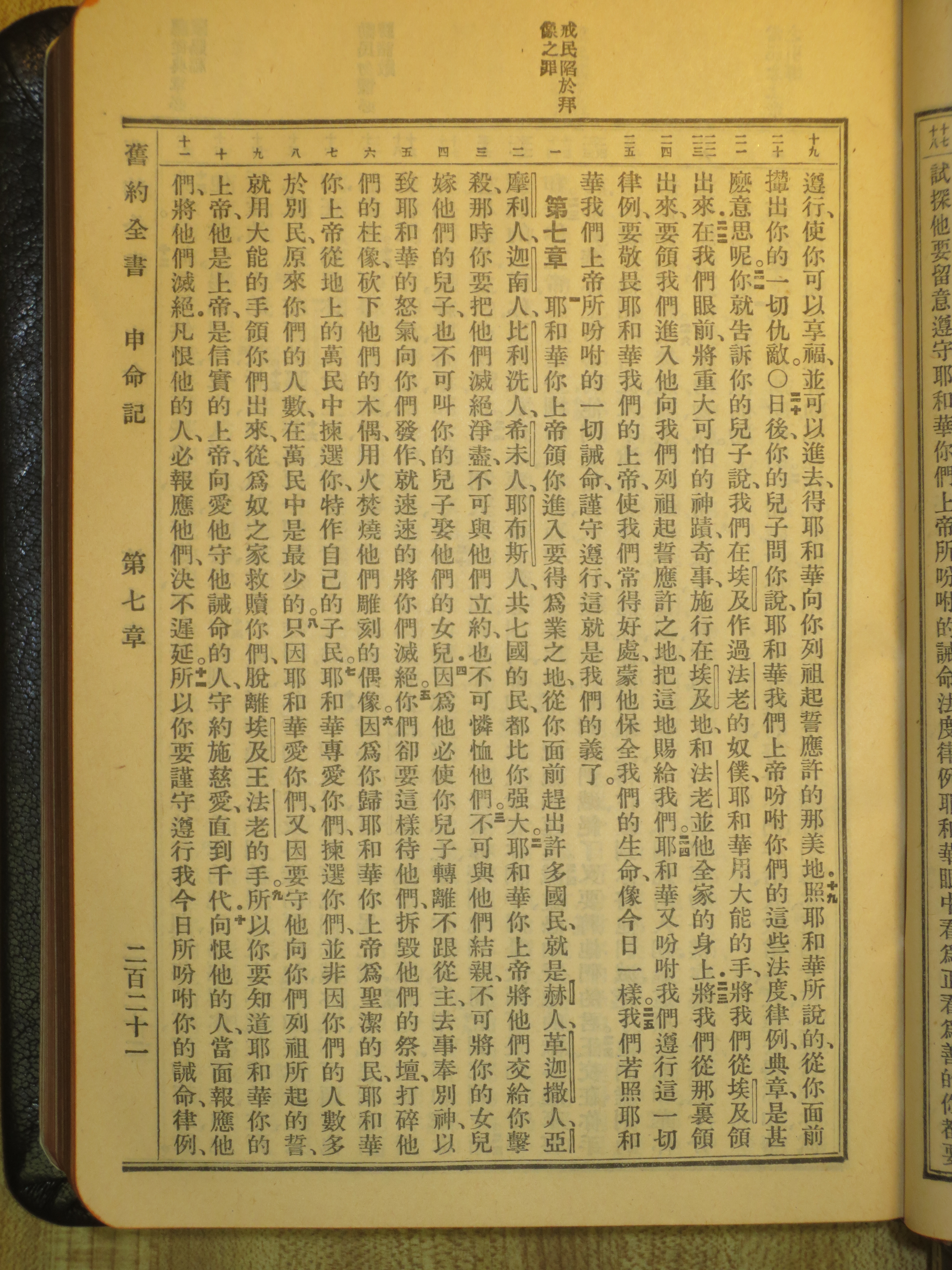 1919年官话和合本 申命记 6 章 19 节到 7 章 11 节