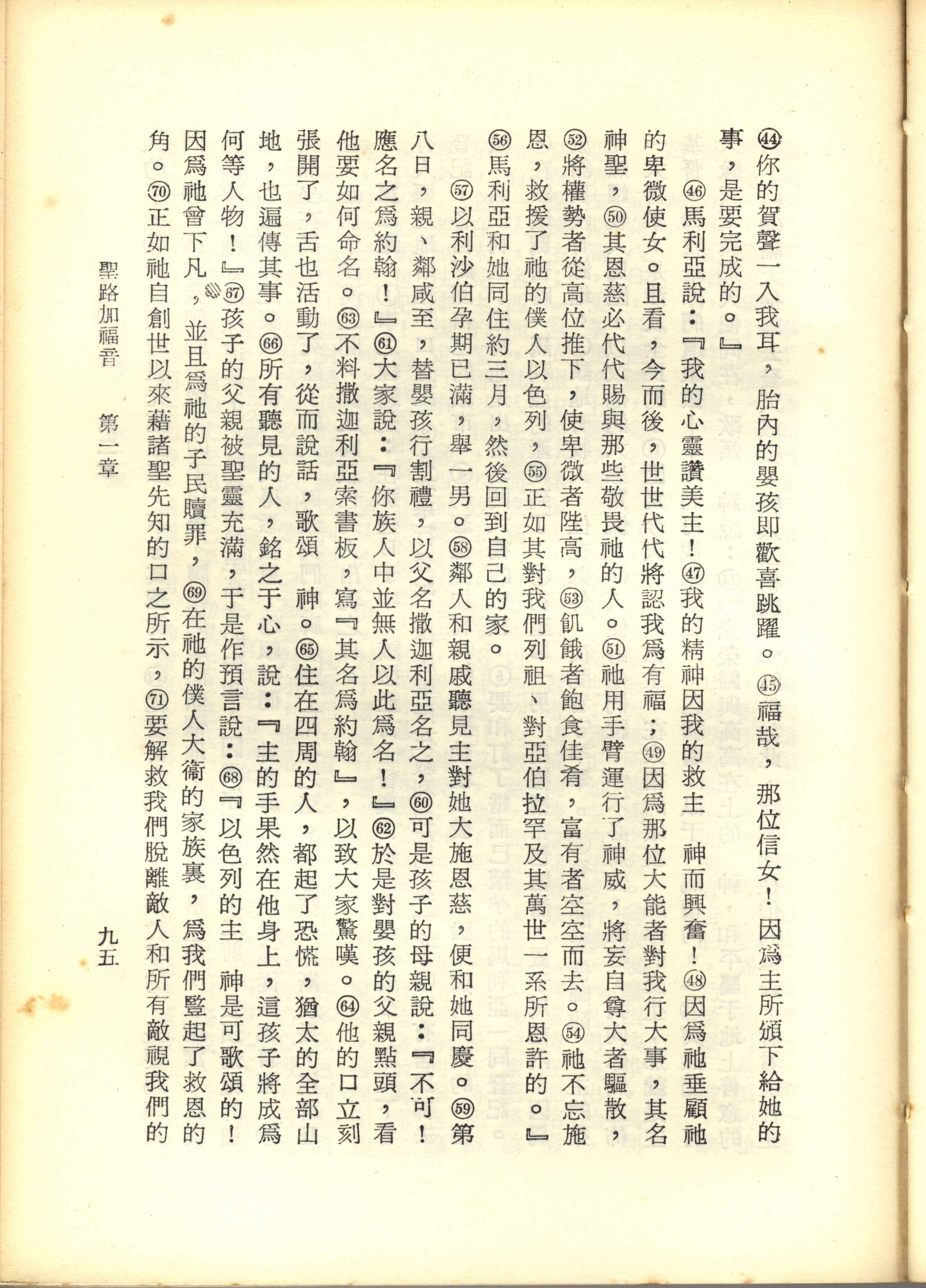 1967年新译新约全集 路加福音 1 章 44 节到 1 章 71 节