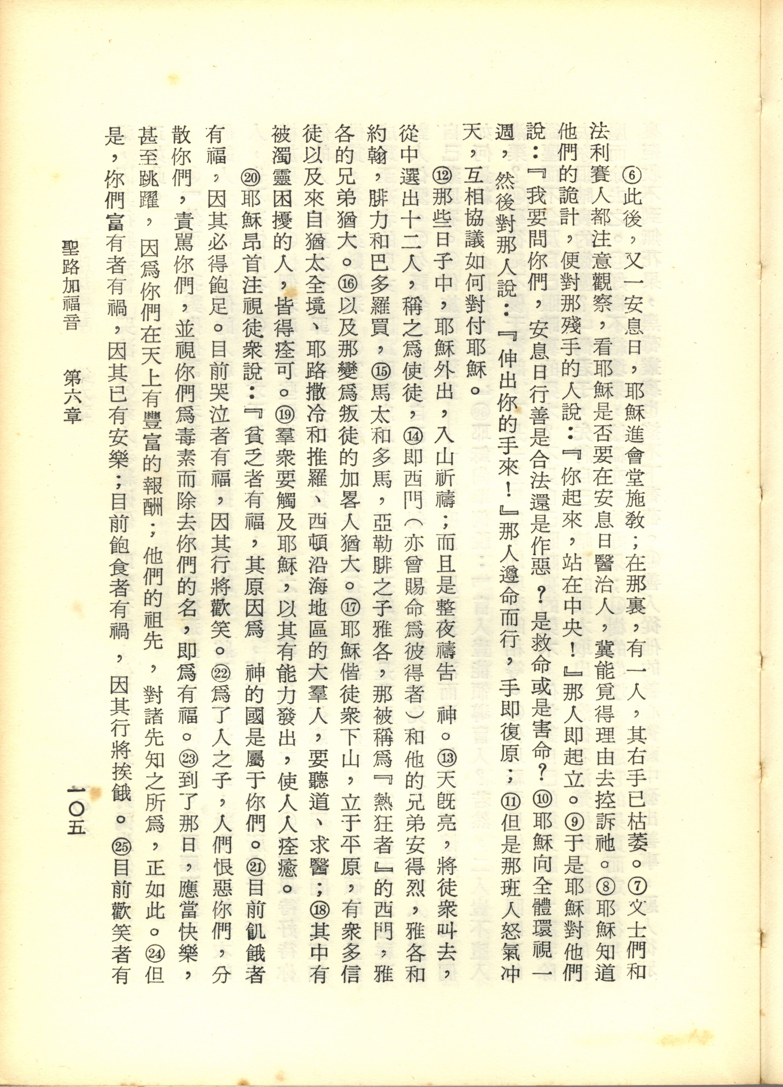 1967年新译新约全集 路加福音 6 章 6 节到 6 章 25 节