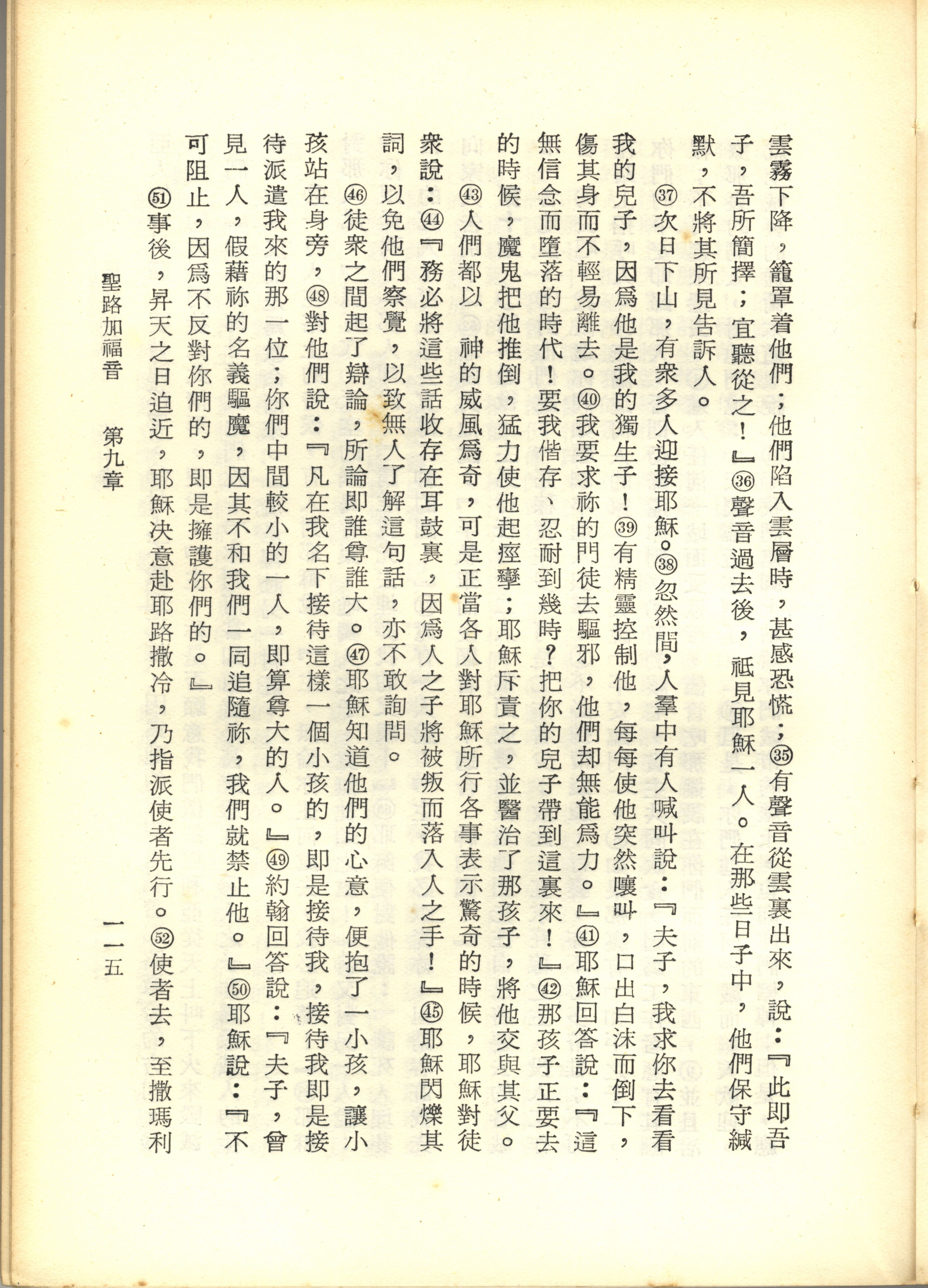 1967年新译新约全集 路加福音 9 章 35 节到 9 章 52 节