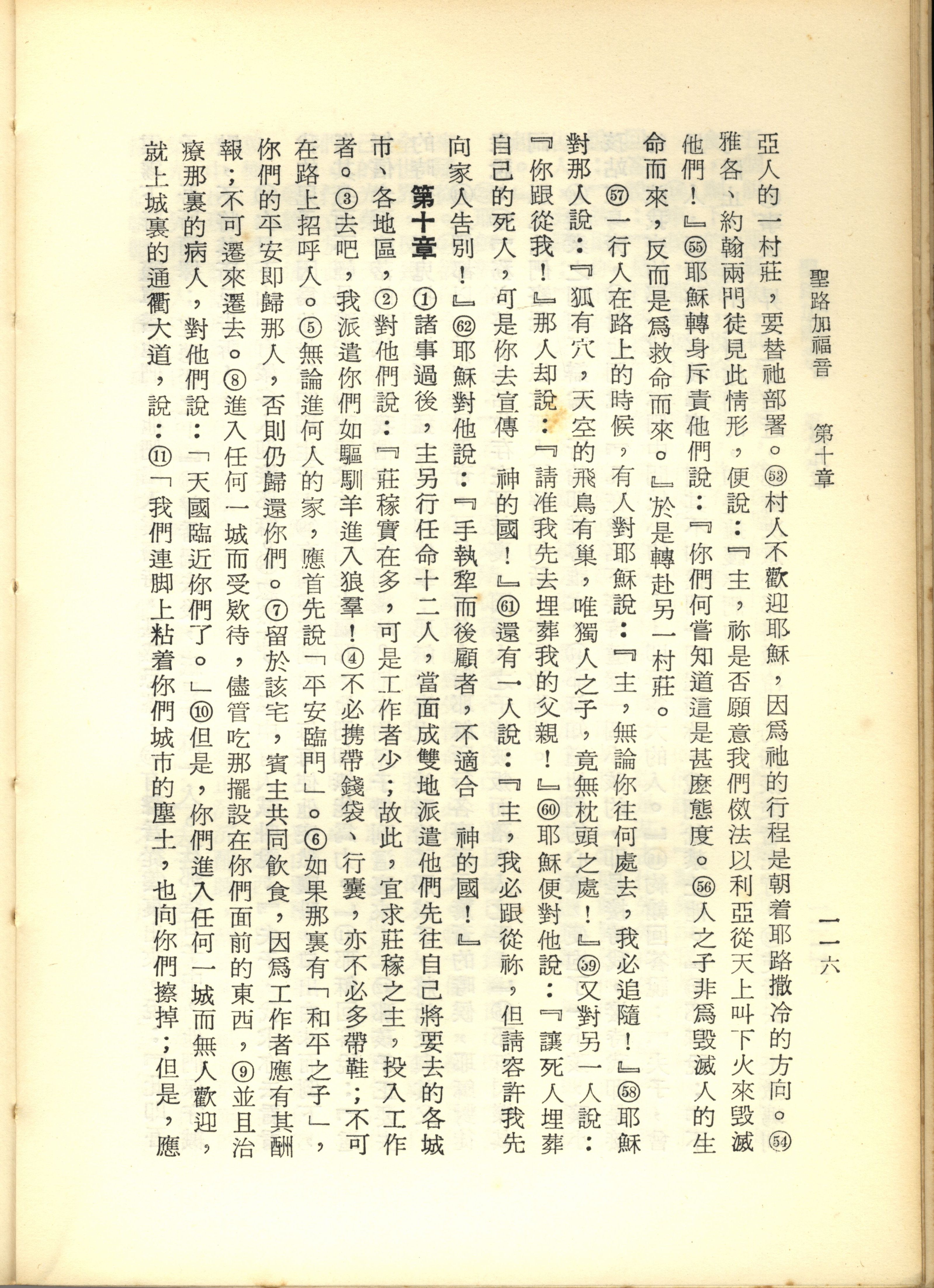 1967年新译新约全集 路加福音 9 章 53 节到 10 章 11 节