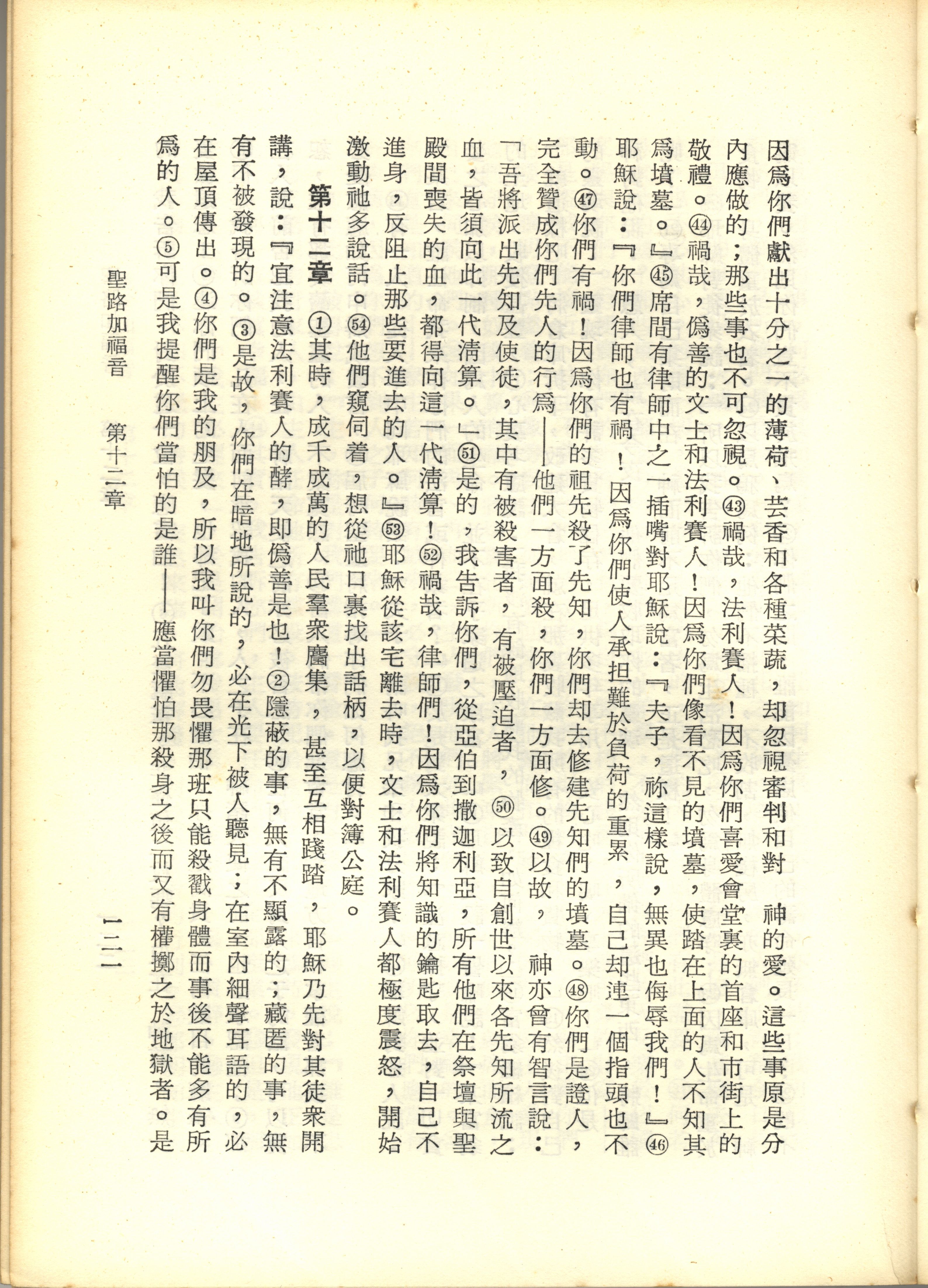 1967年新译新约全集 路加福音 11 章 43 节到 12 章 5 节