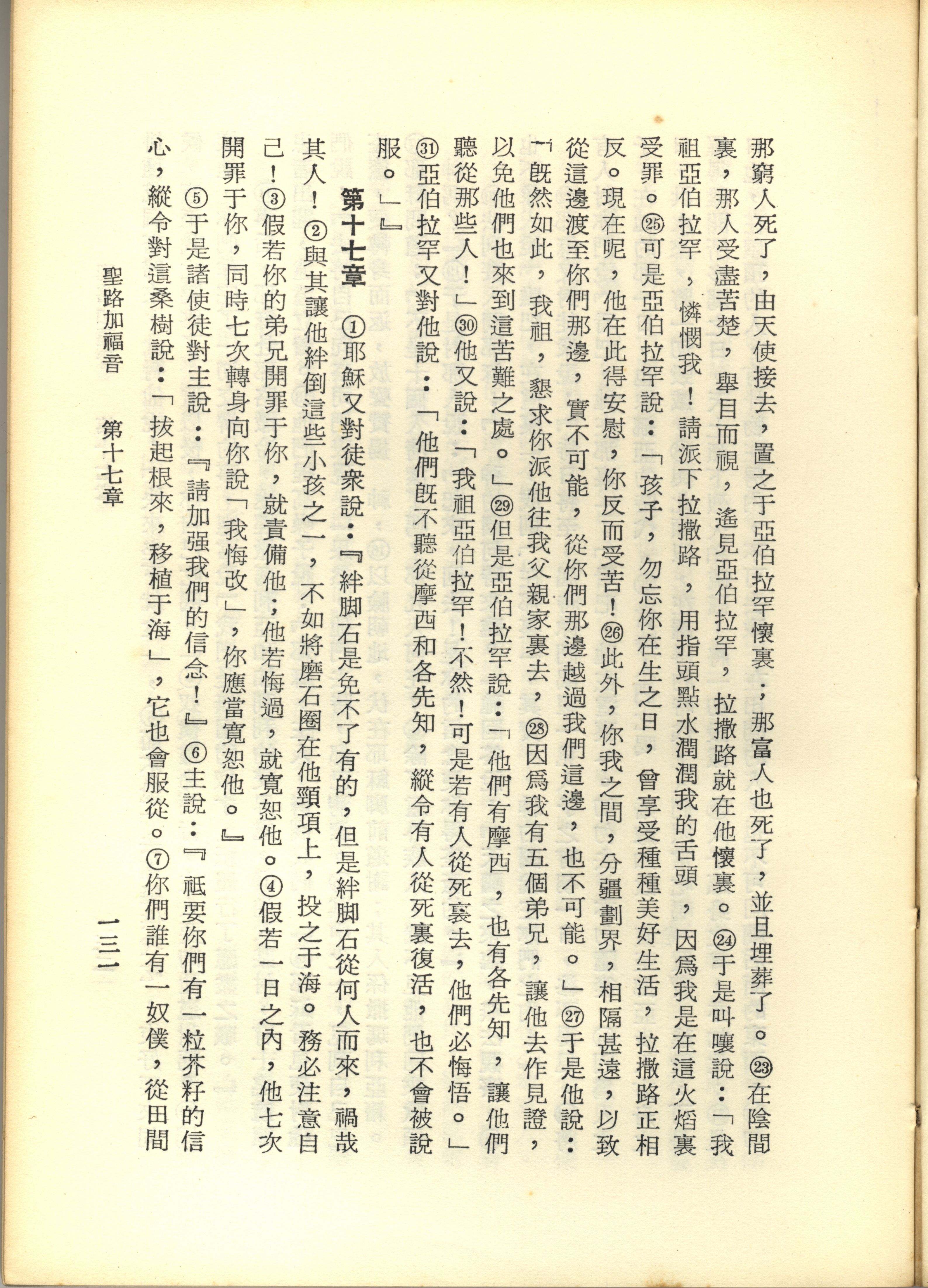 1967年新译新约全集 路加福音 16 章 23 节到 17 章 7 节