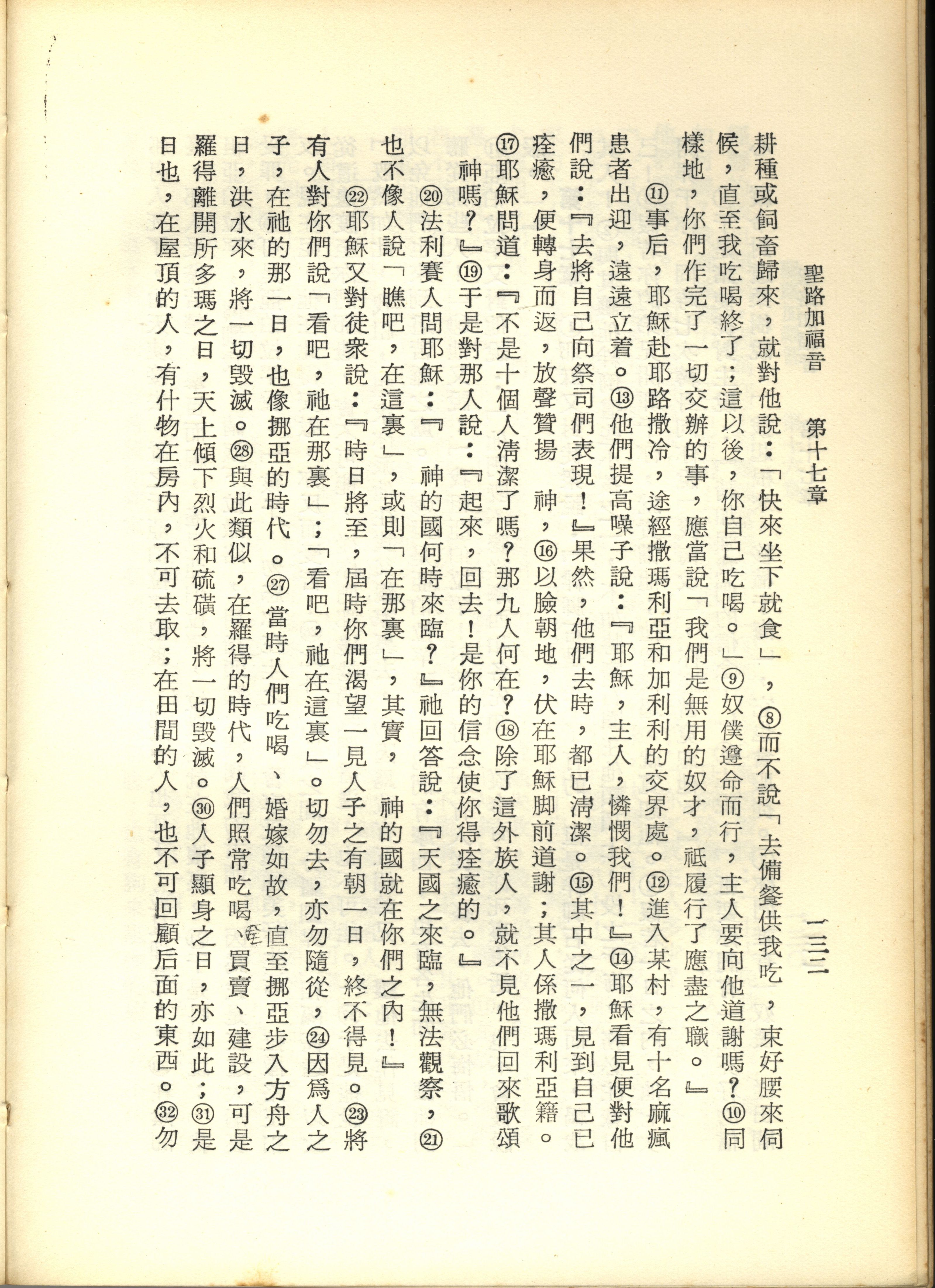1967年新译新约全集 路加福音 17 章 8 节到 17 章 32 节