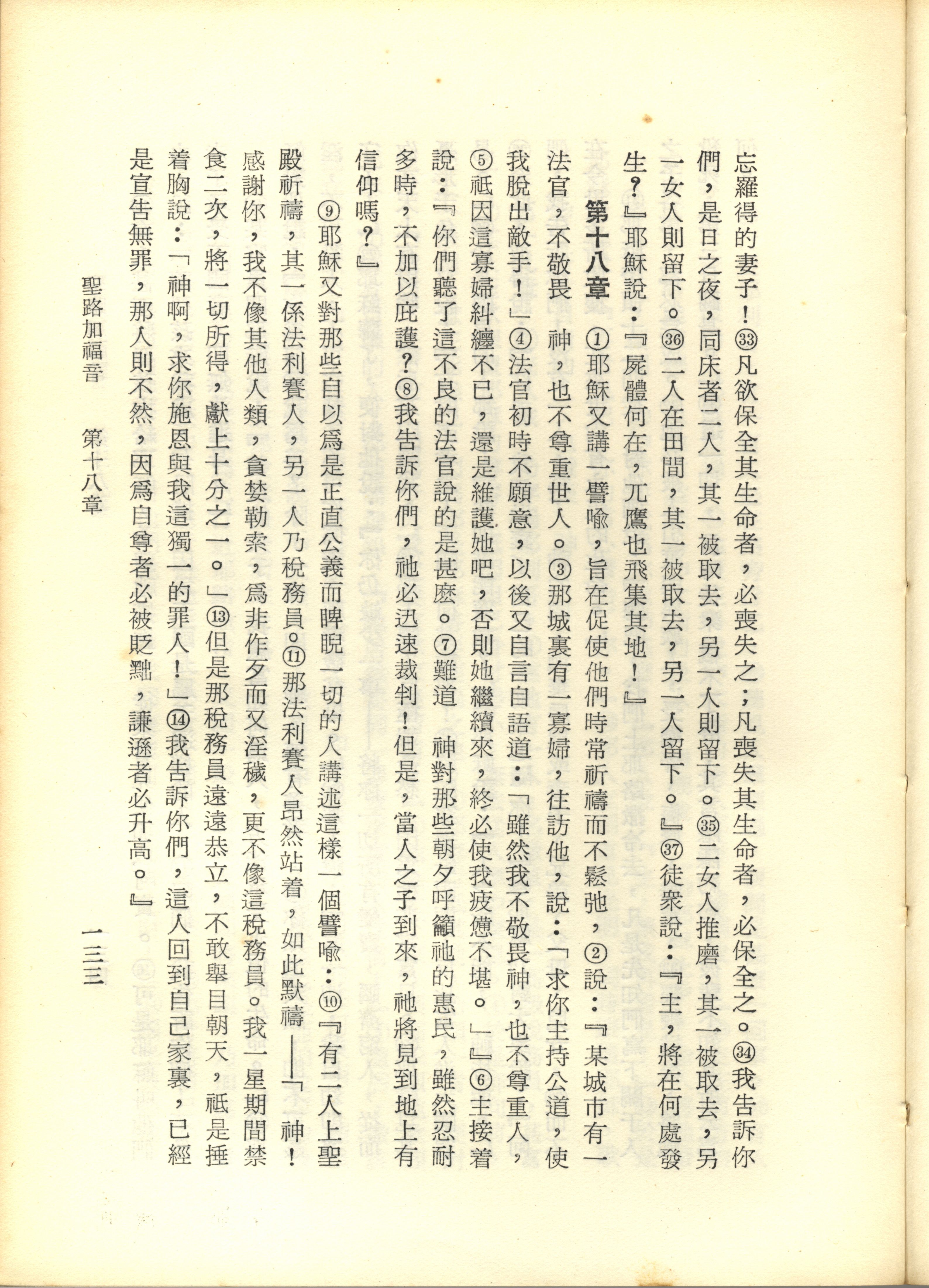 1967年新译新约全集 路加福音 17 章 33 节到 18 章 14 节
