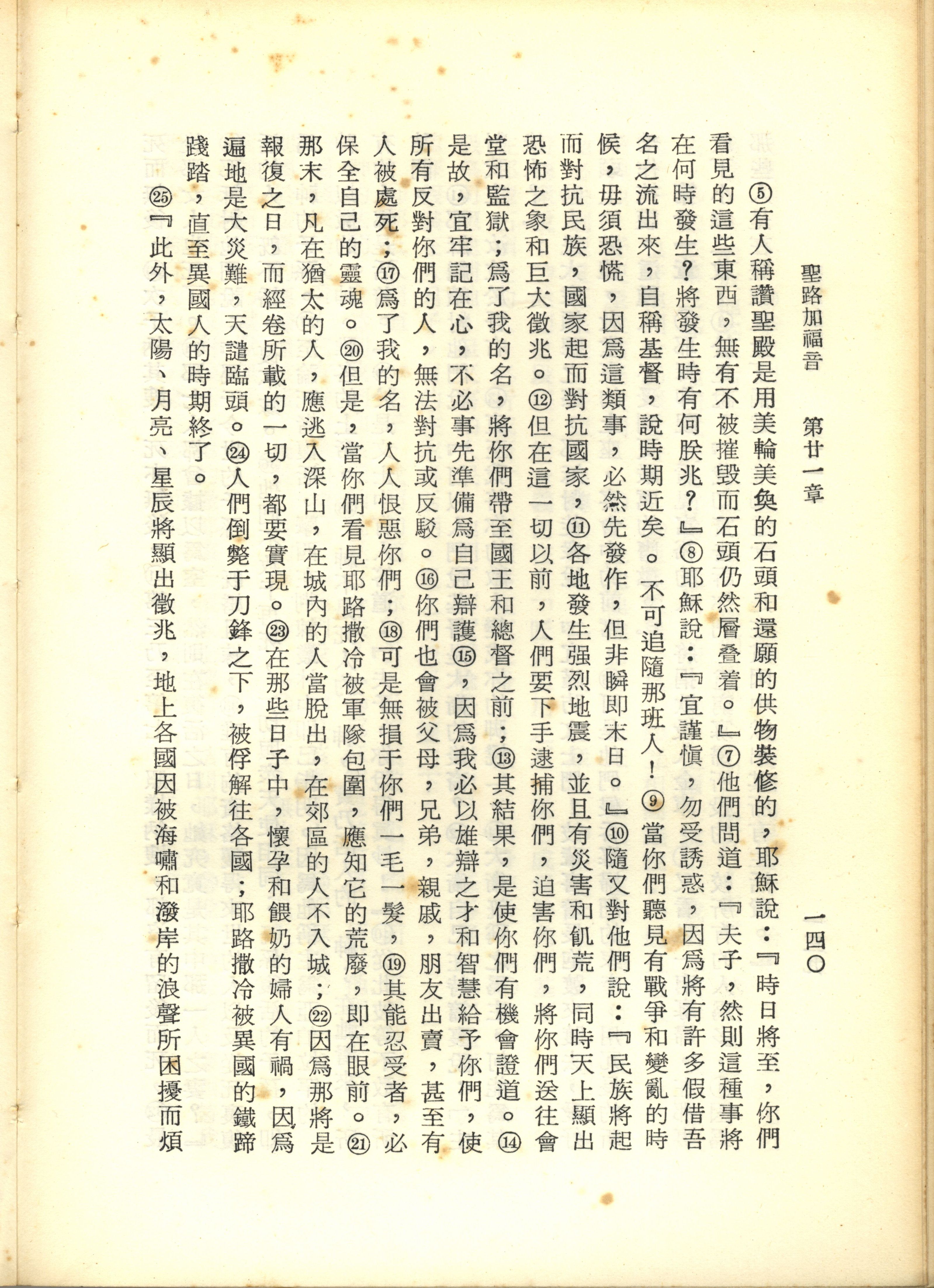 1967年新译新约全集 路加福音 21 章 5 节到 21 章 25 节