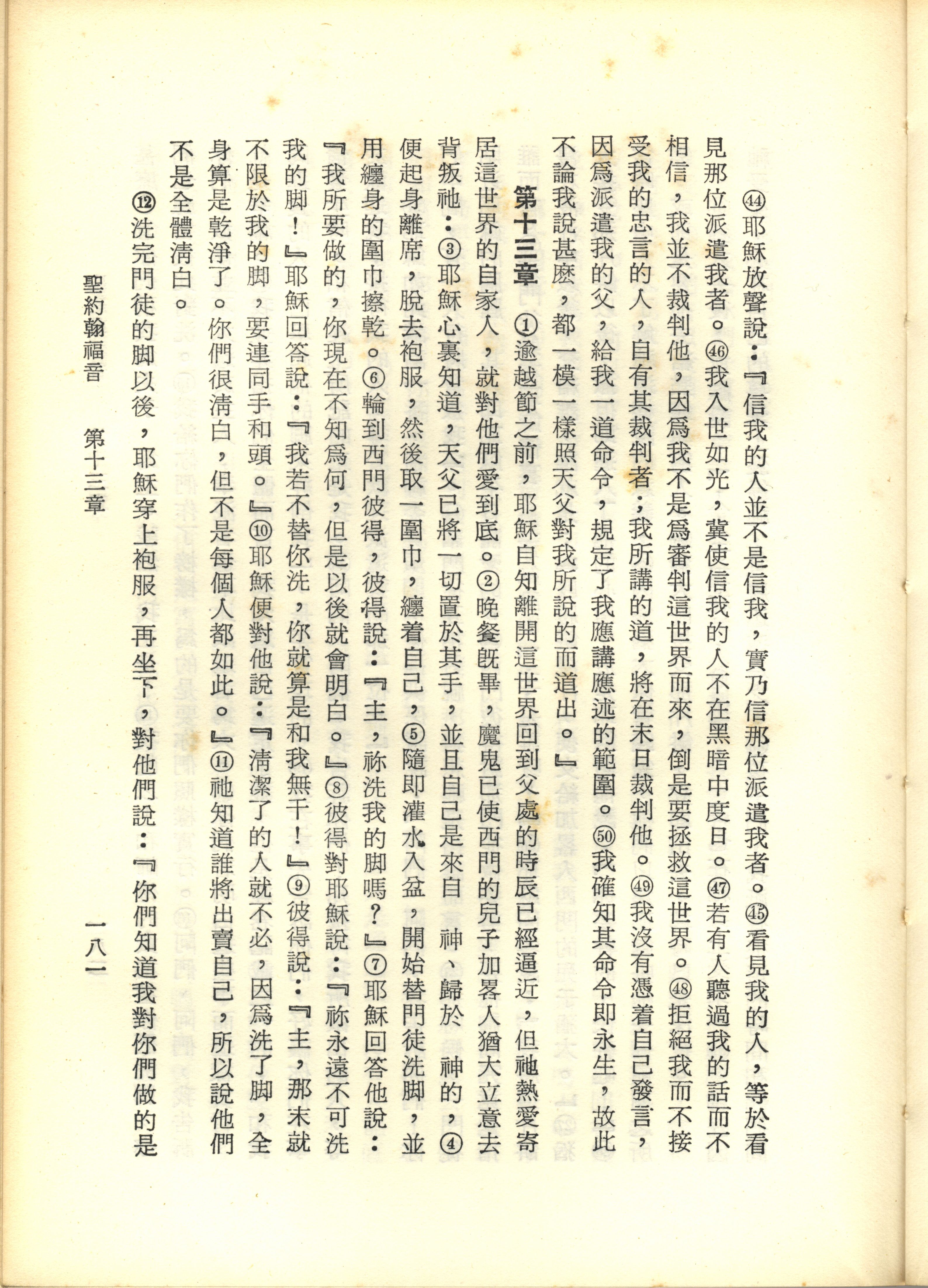 1967年新译新约全集 约翰福音 12 章 44 节到 13 章 12 节
