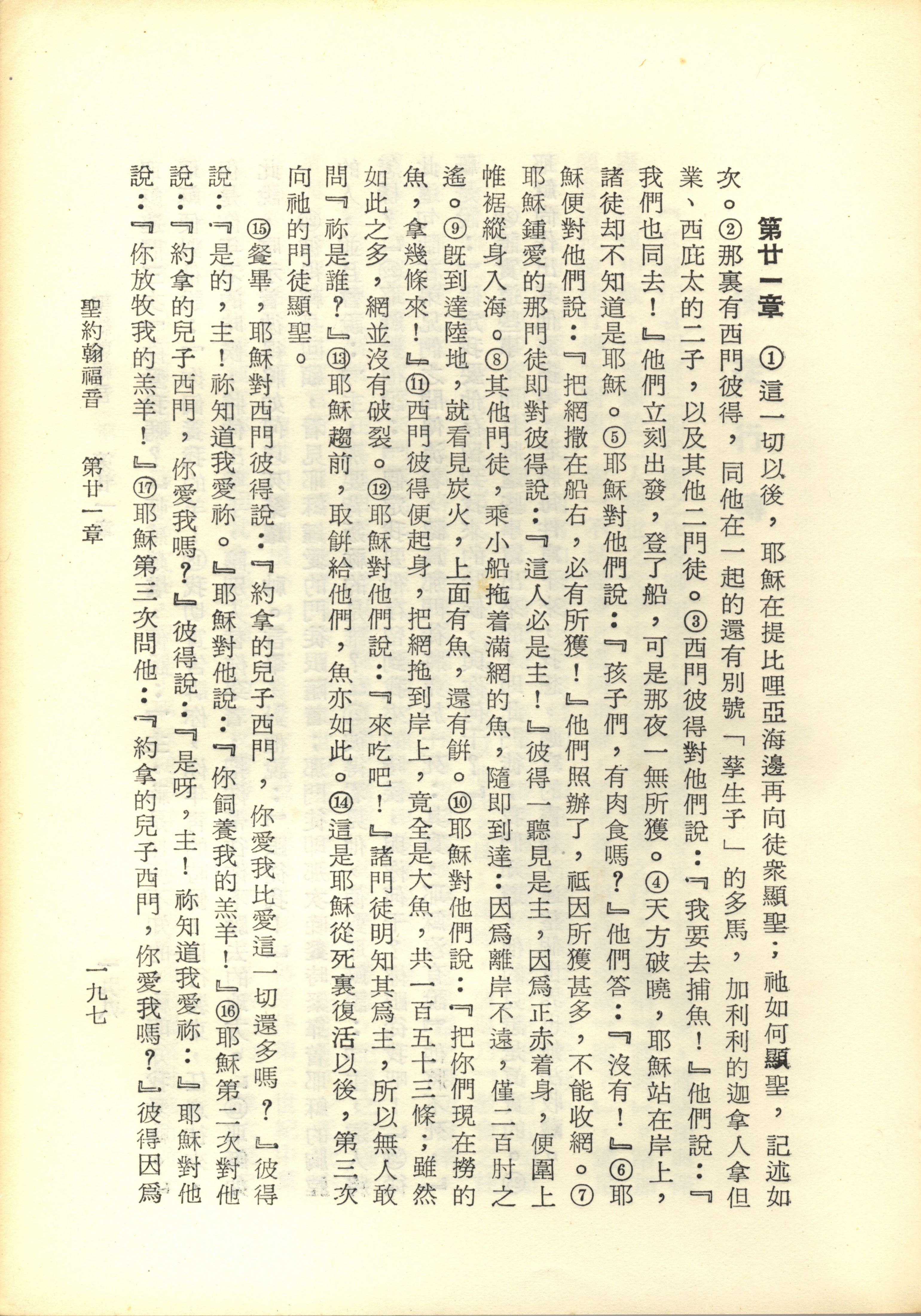1967年新译新约全集 约翰福音 21 章 1 节到 21 章 17 节