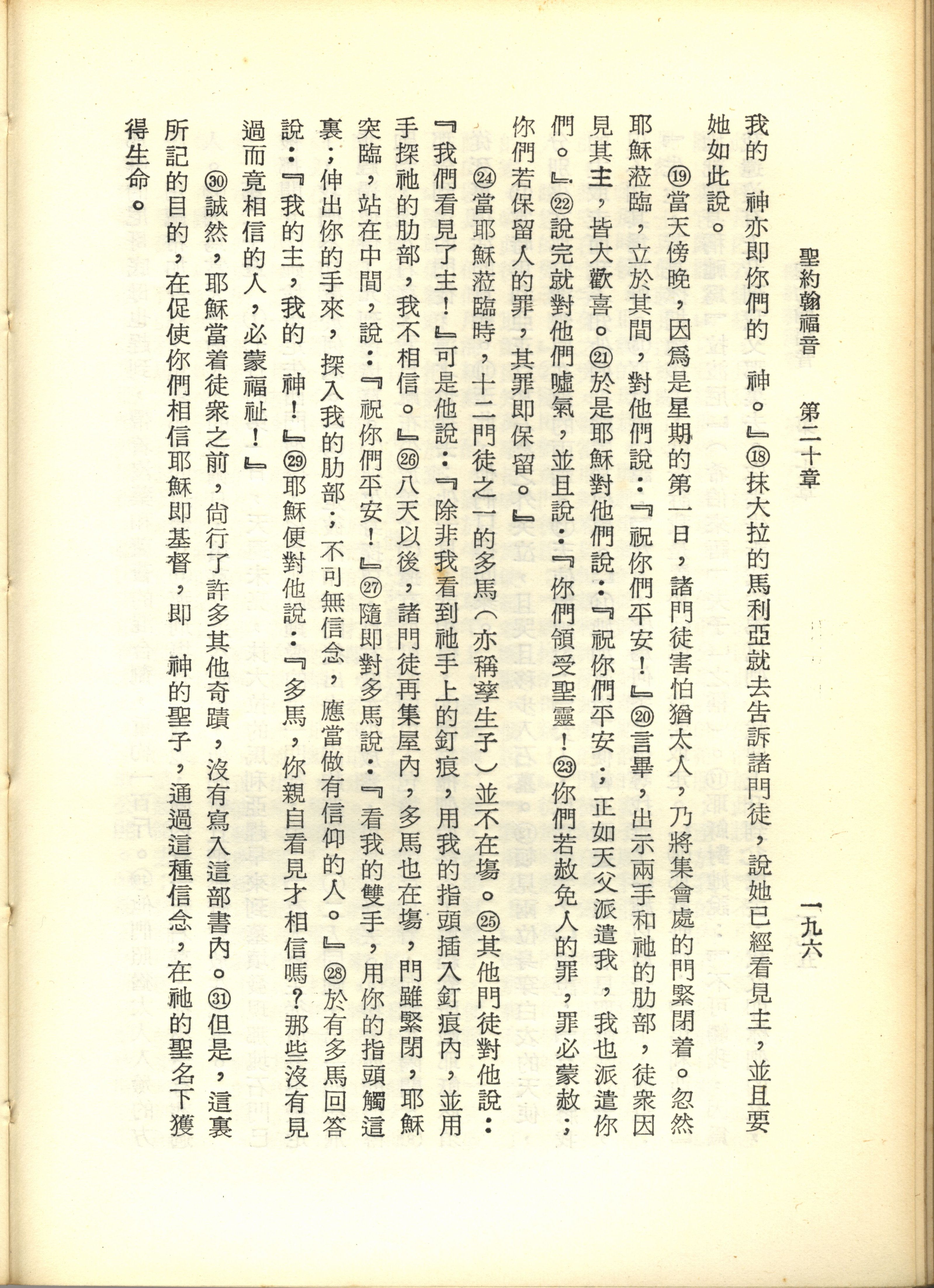 1967年新译新约全集 约翰福音 30 章 18 节到 30 章 31 节