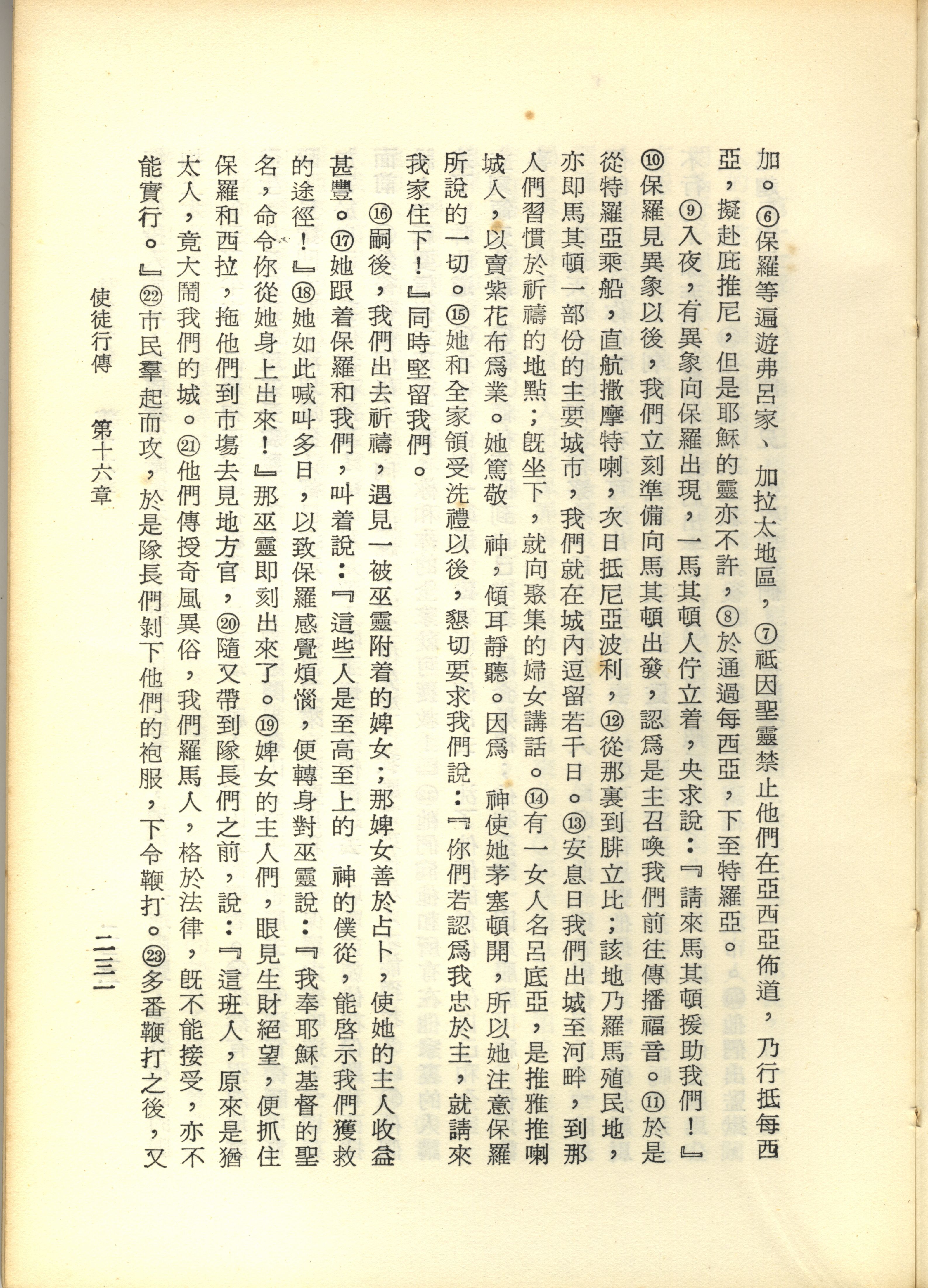 1967年新译新约全集 使徒行传 16 章 6 节到 16 章 23 节