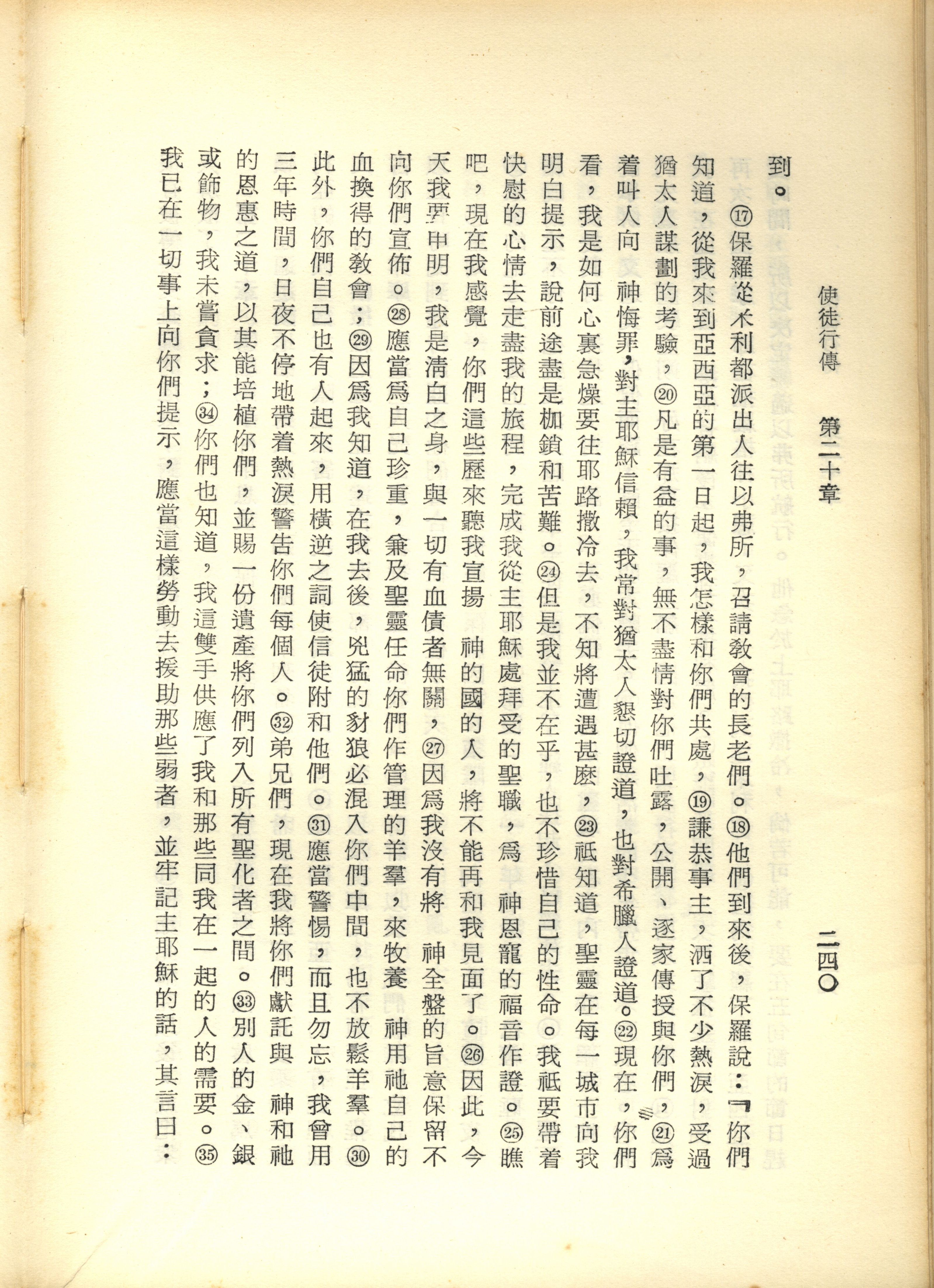 1967年新译新约全集 使徒行传 20 章 17 节到 20 章 35 节