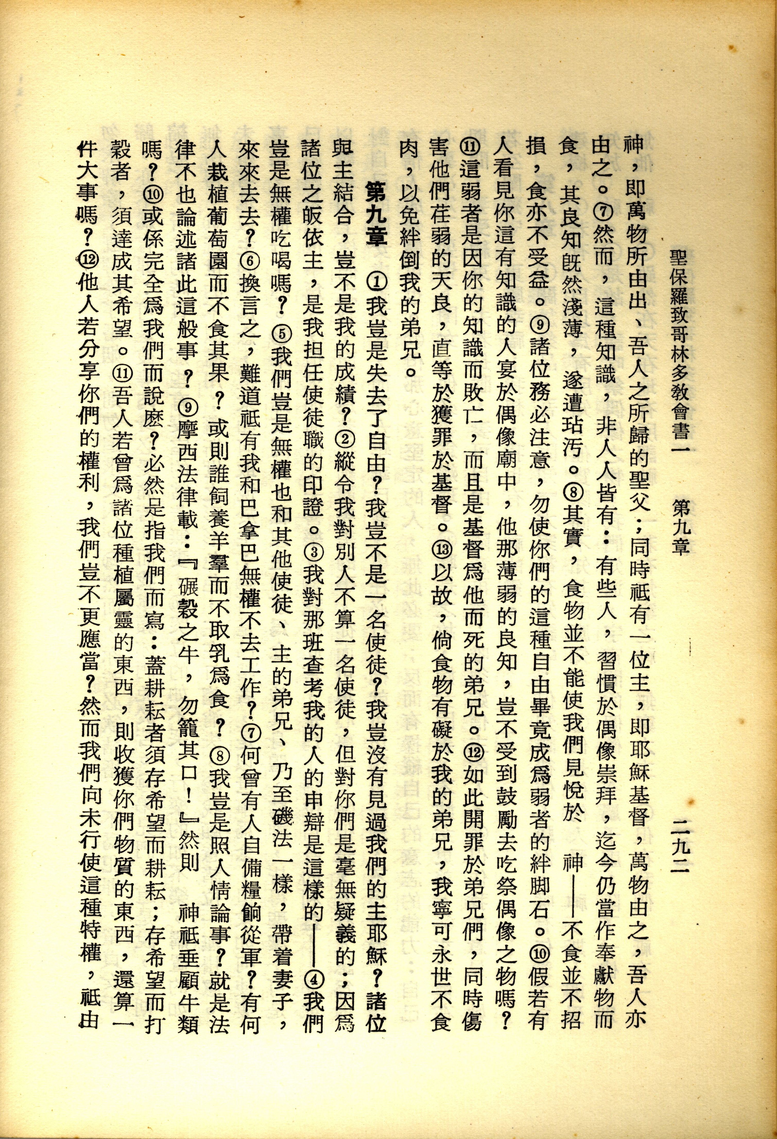 1967年新译新约全集 哥林多前书 8 章 7 节到 9 章 12 节