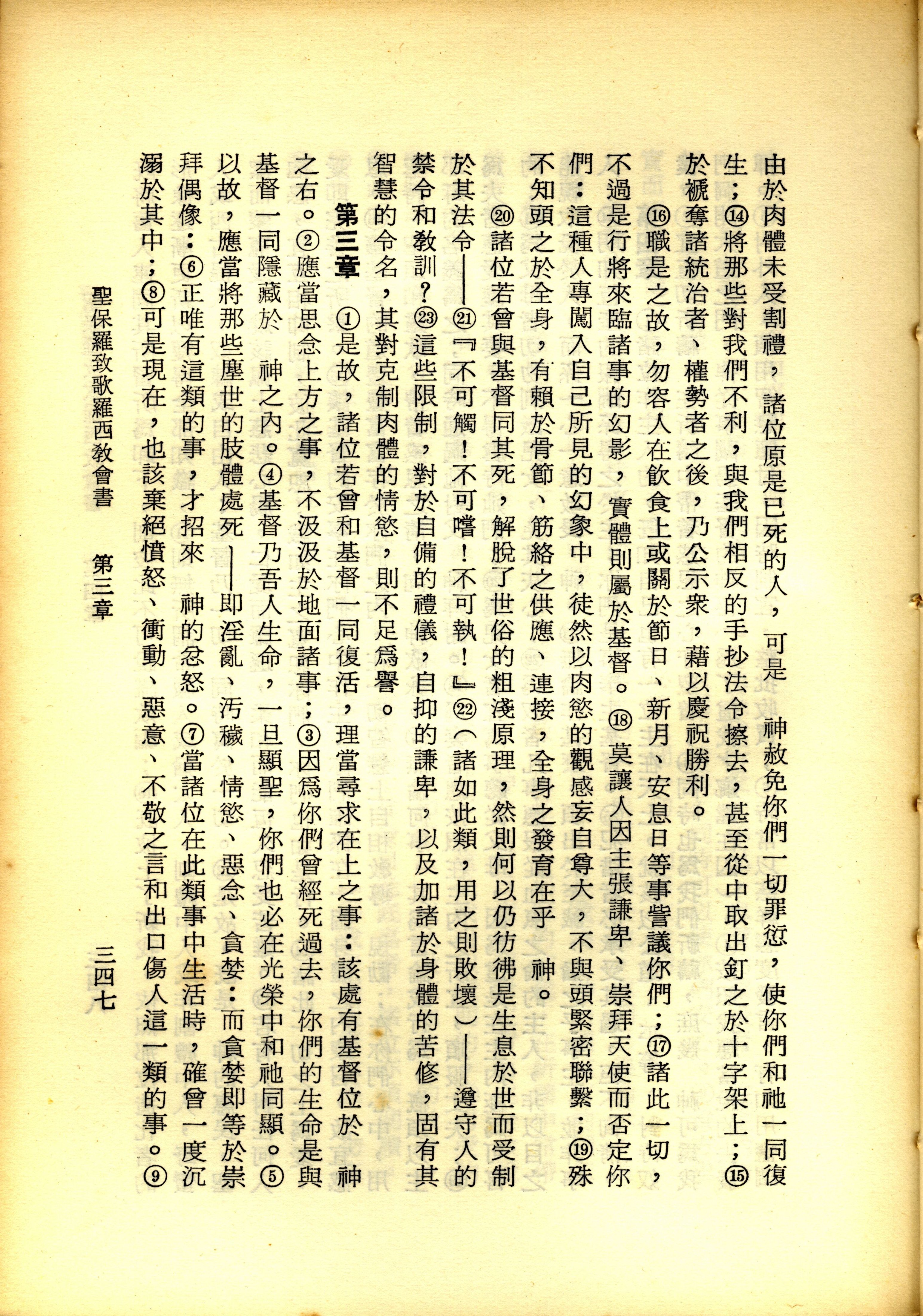 1967年新译新约全集 歌罗西书 2 章 14 节到 3 章 9 节