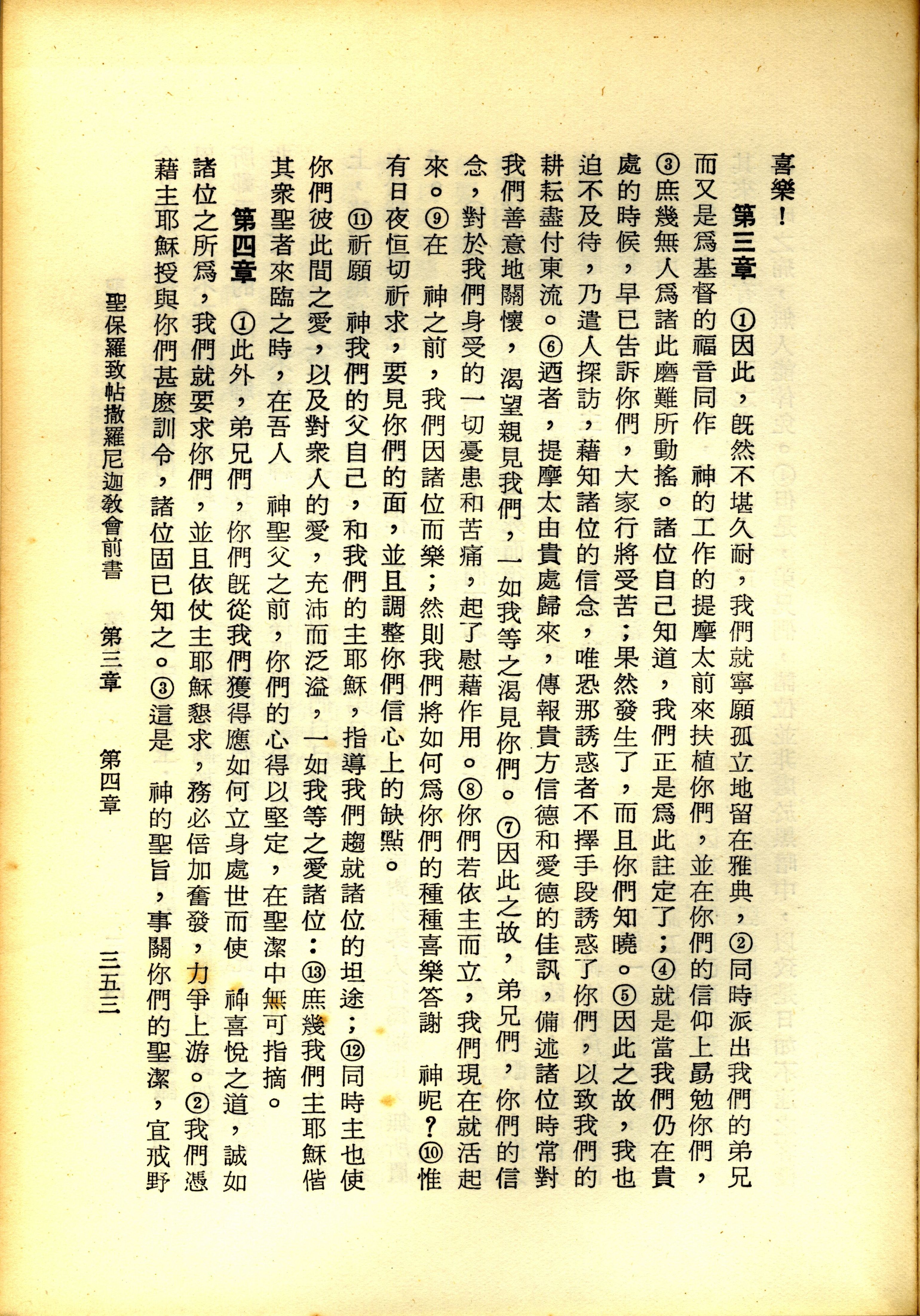 1967年新译新约全集 帖撒罗尼迦前书 3 章 1 节到 4 章 3 节