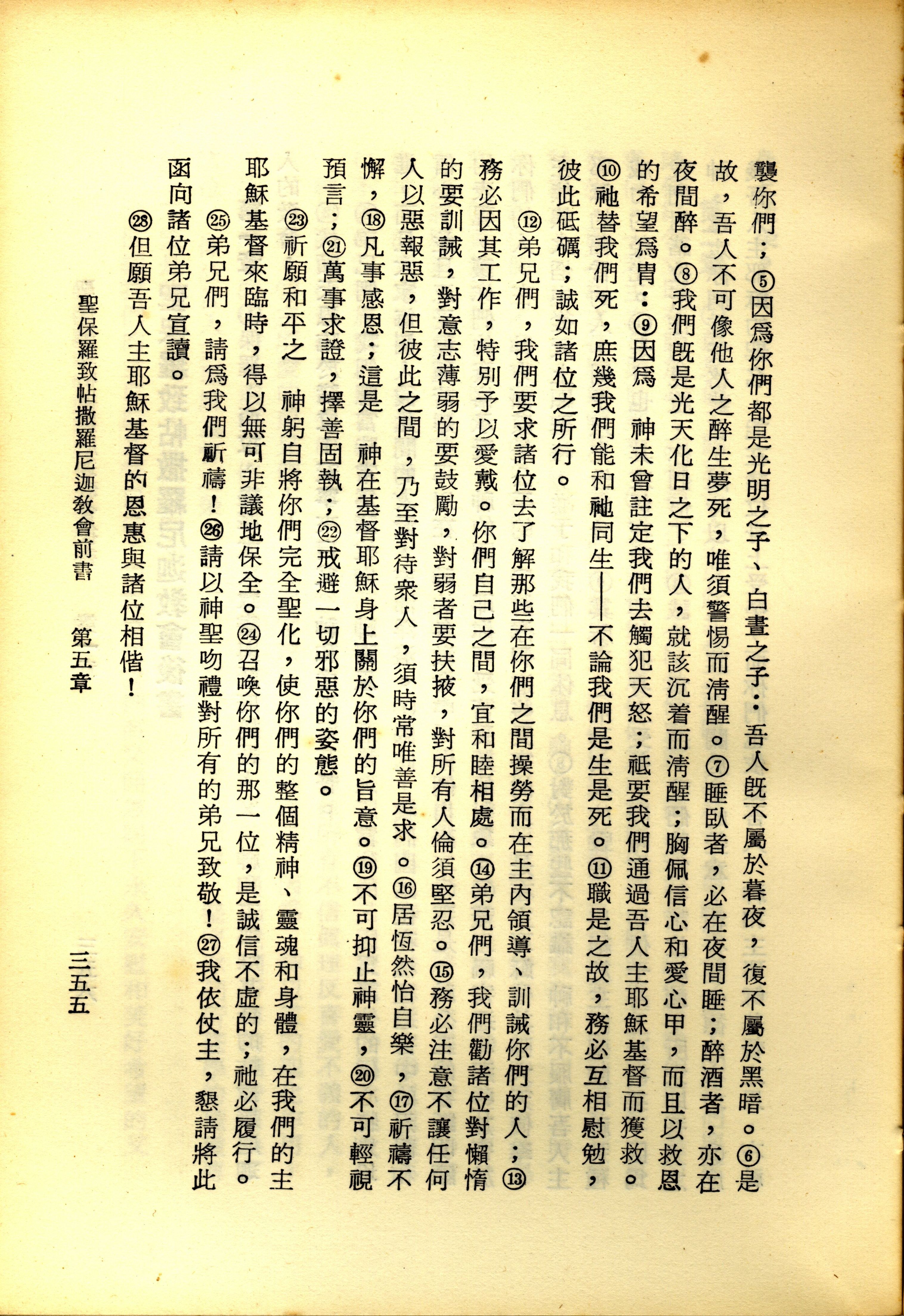 1967年新译新约全集 帖撒罗尼迦前书 5 章 5 节到 5 章 28 节