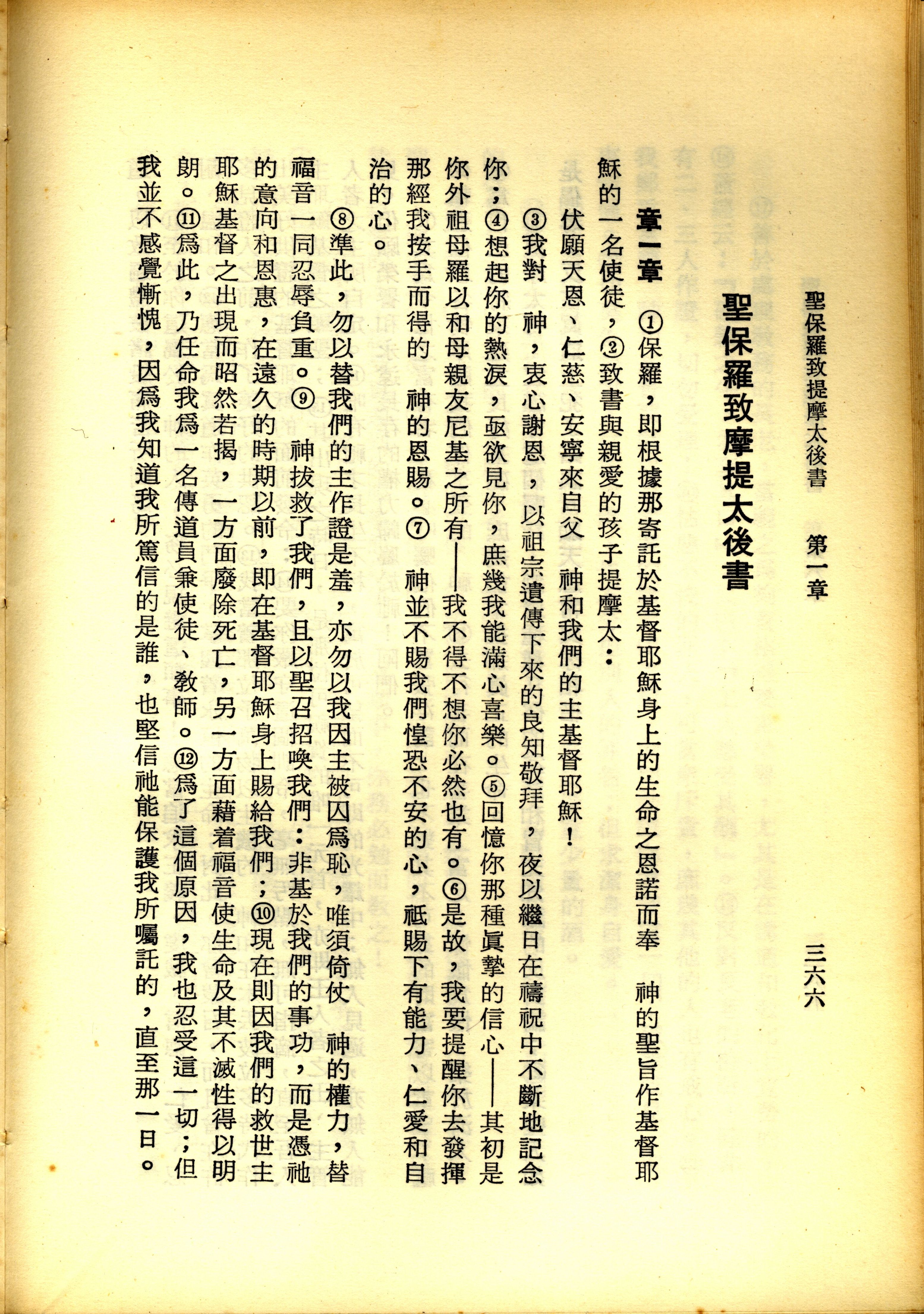 1967年新译新约全集 提摩太后书 1 章 1 节到 1 章 12 节
