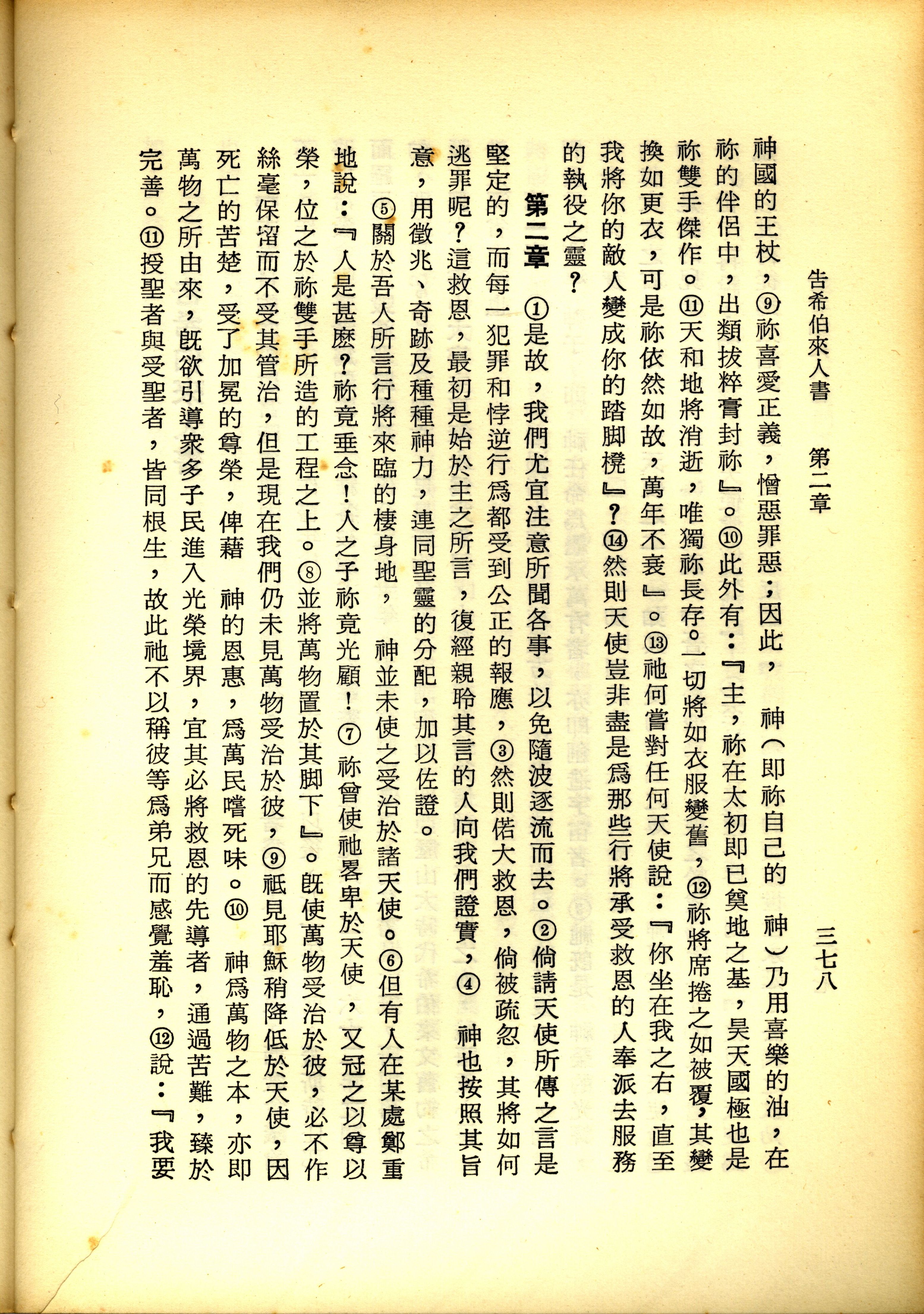 1967年新译新约全集 希伯来书 1 章 9 节到 2 章 12 节