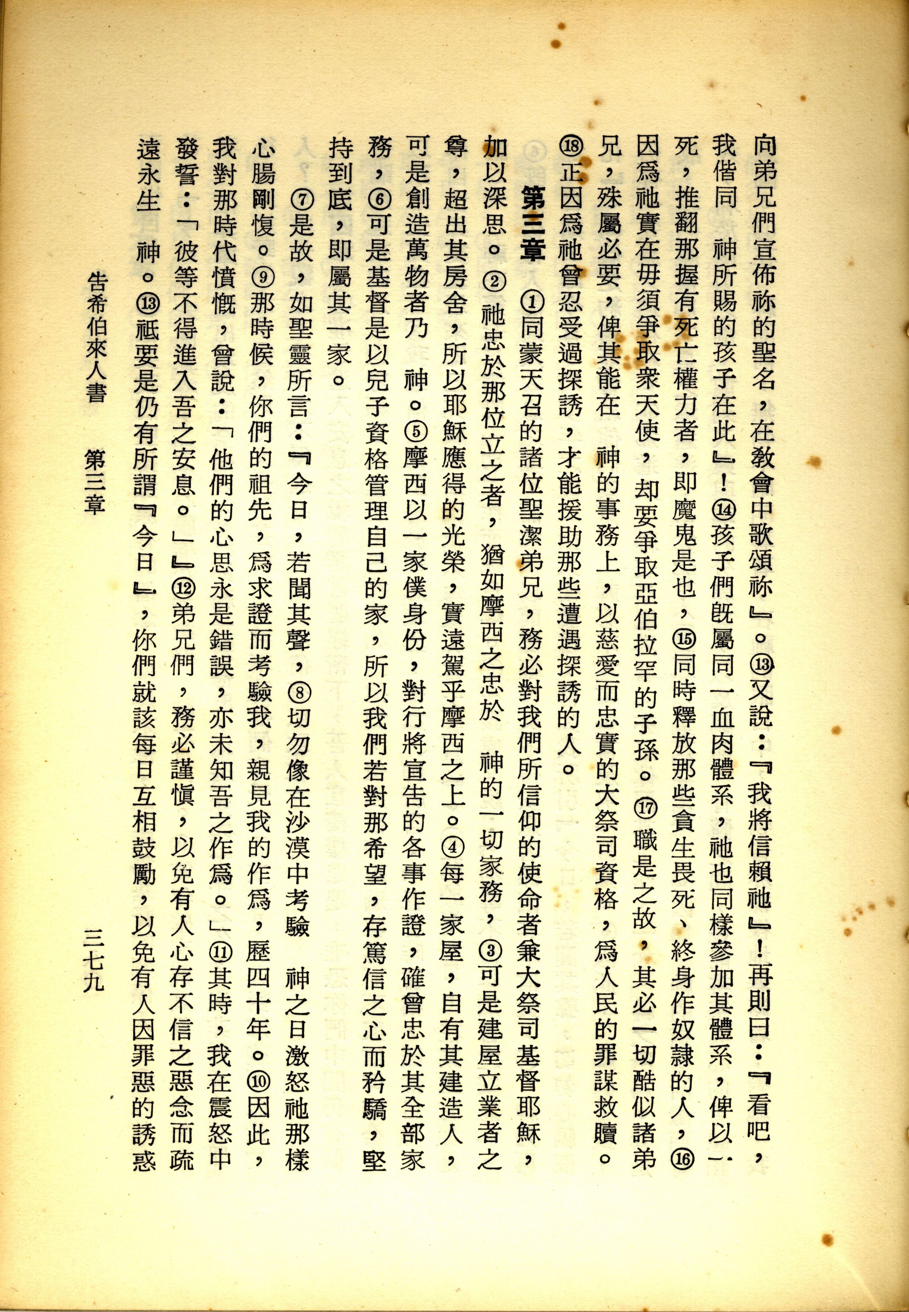 1967年新译新约全集 希伯来书 2 章 13 节到 3 章 13 节
