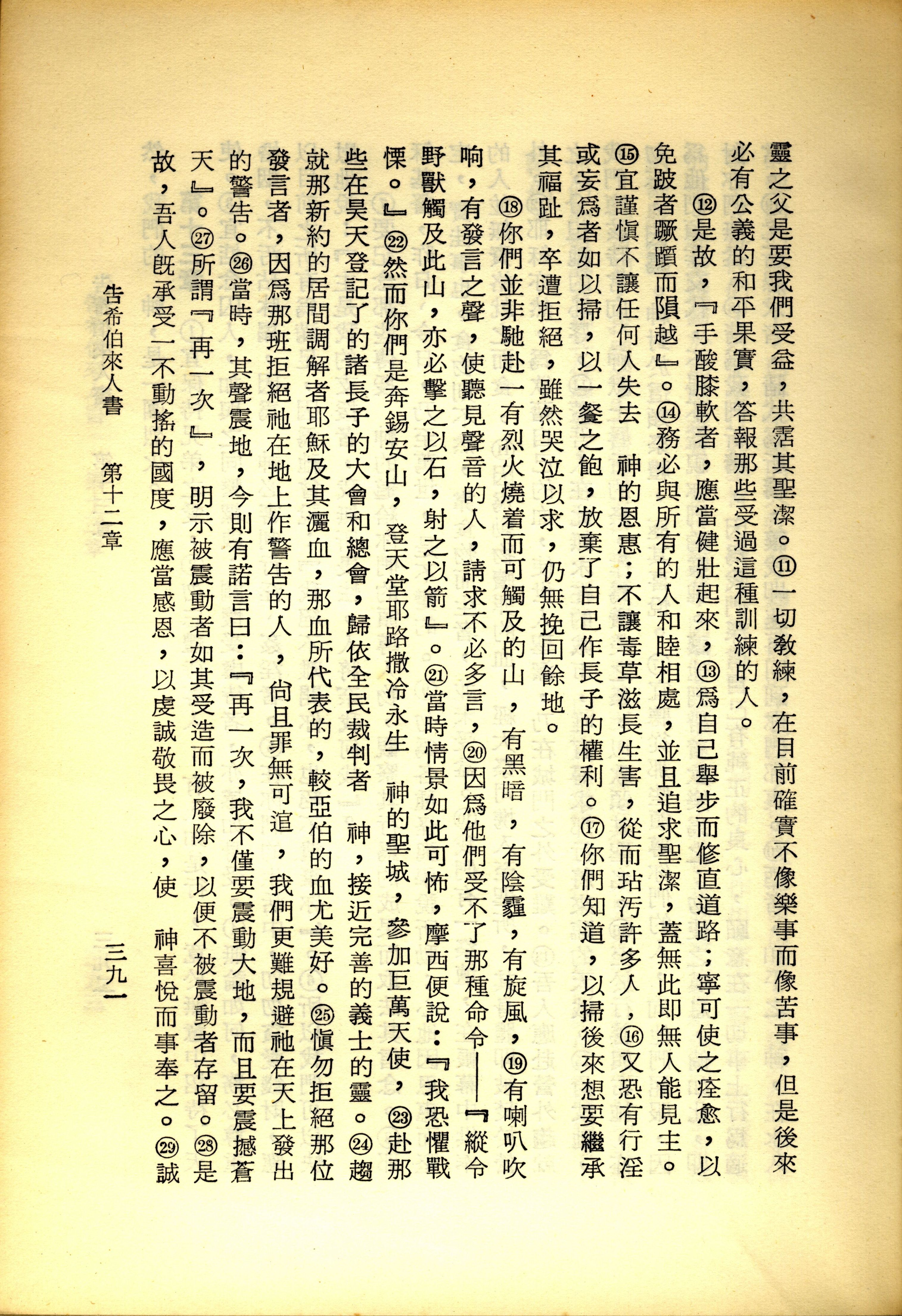 1967年新译新约全集 希伯来书 12 章 11 节到 12 章 29 节