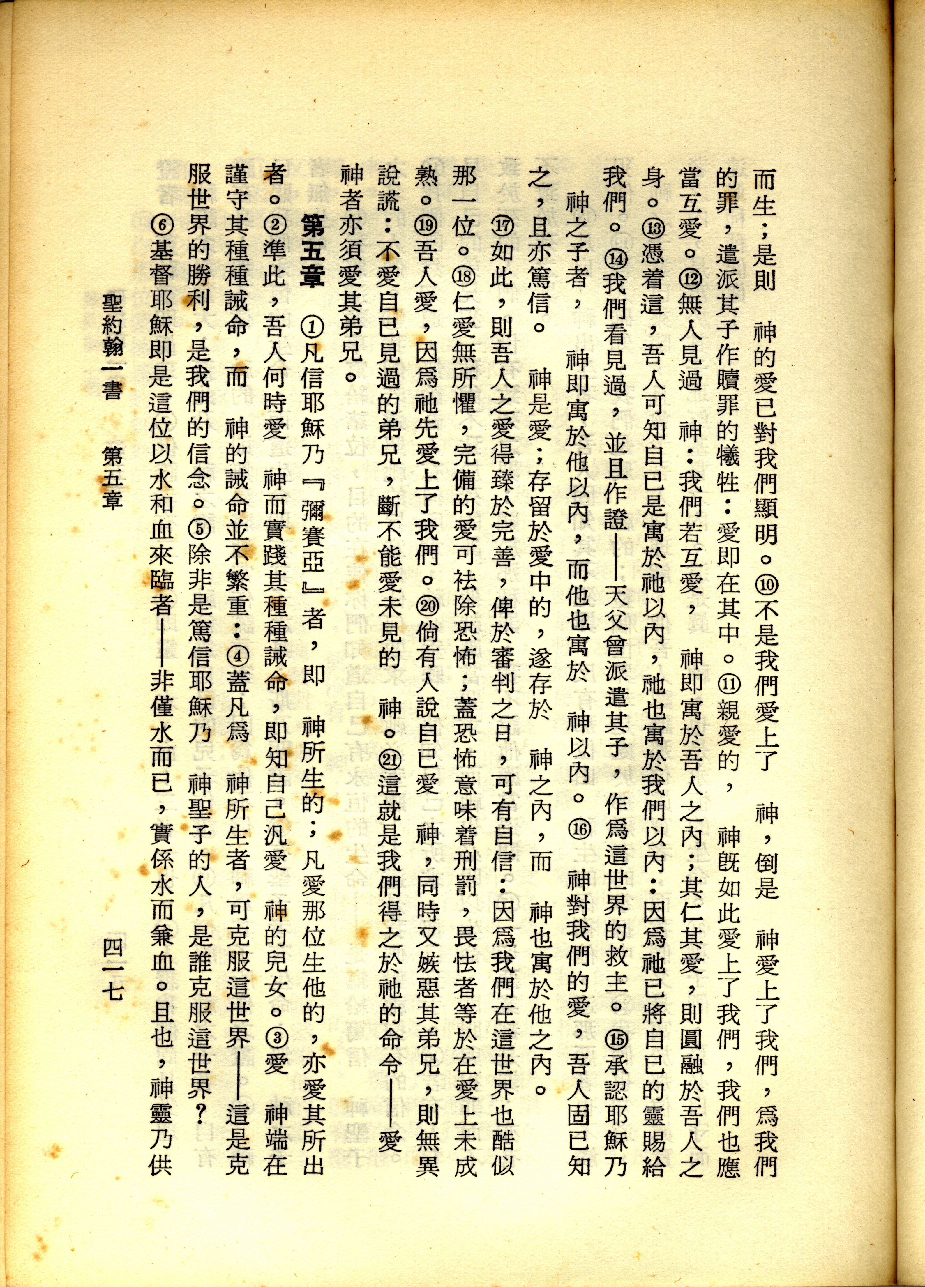 1967年新译新约全集 约翰一书 4 章 10 节到 5 章 6 节