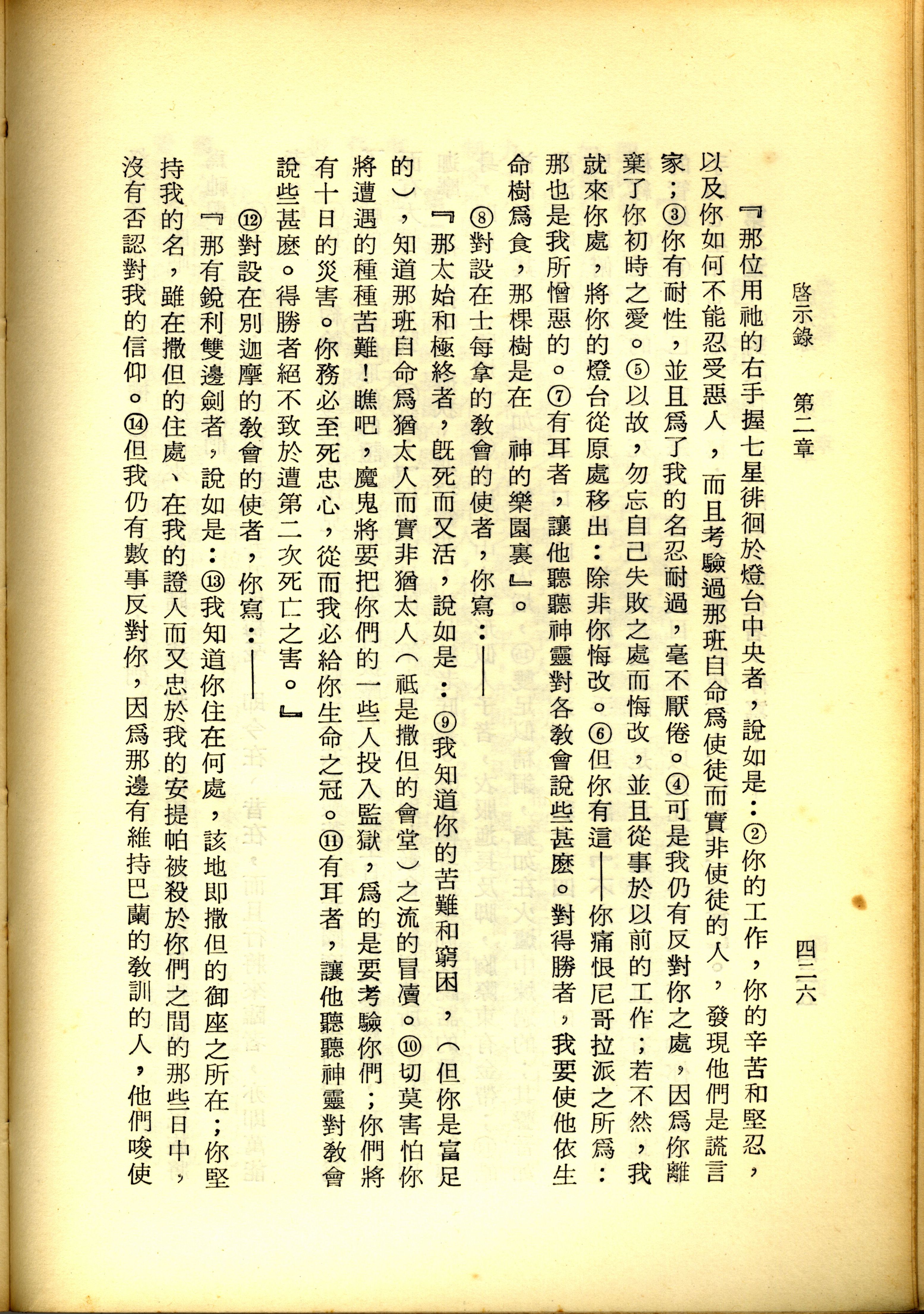 1967年新译新约全集 启示录 2 章 2 节到 2 章 14 节