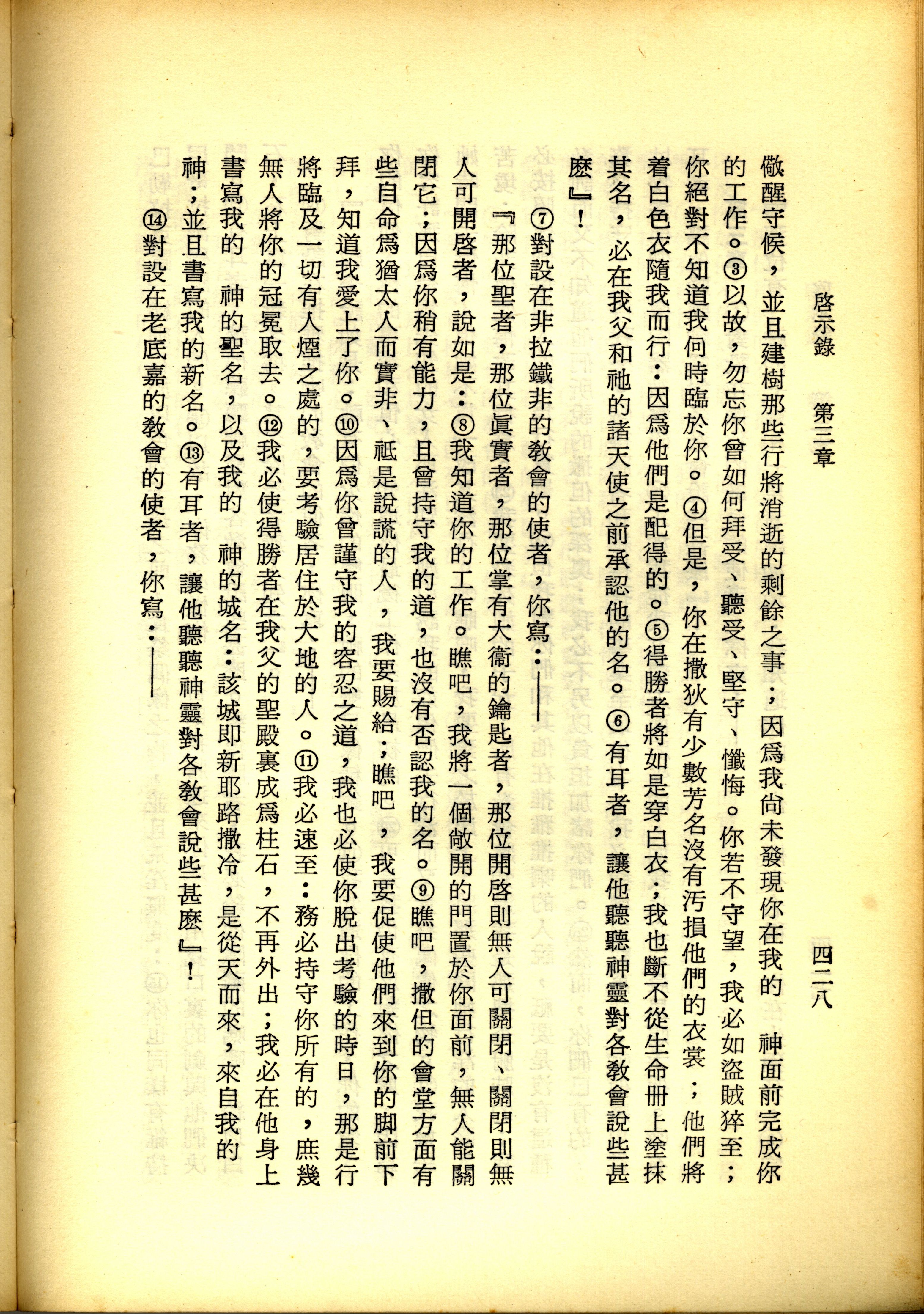 1967年新译新约全集 启示录 3 章 3 节到 3 章 14 节