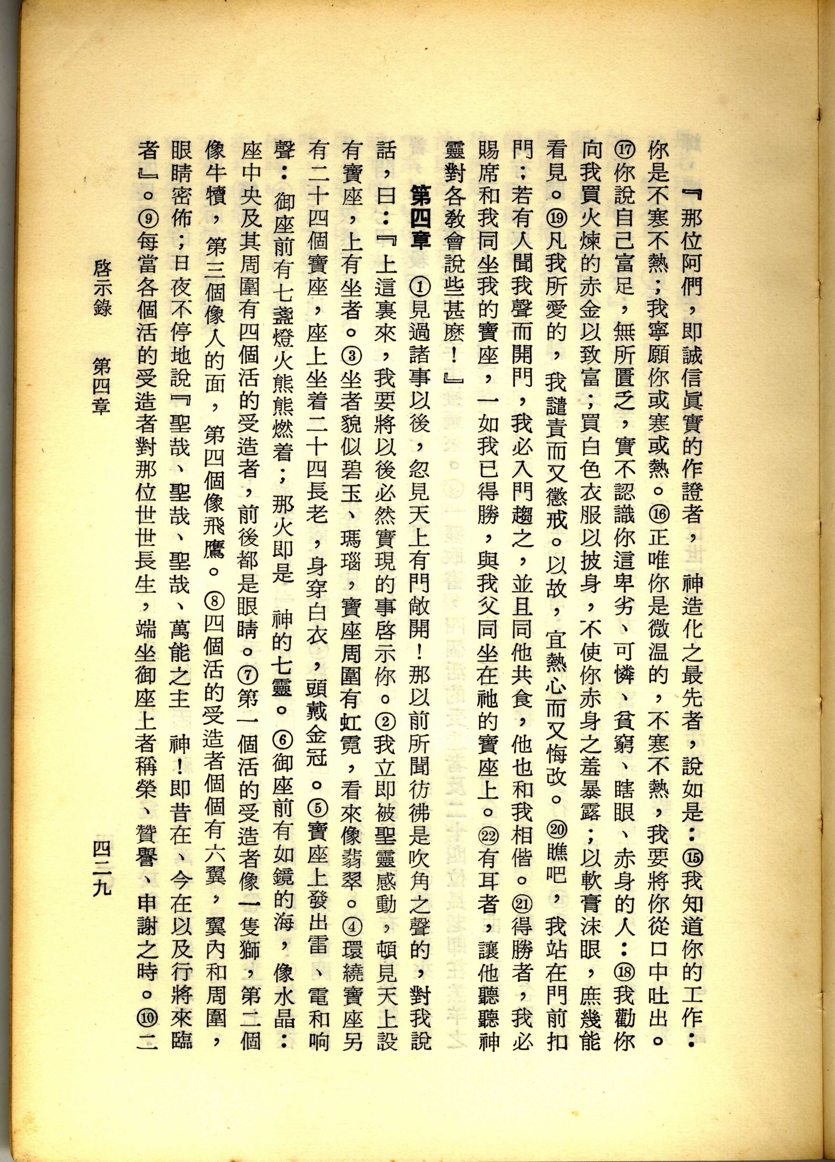 1967年新译新约全集 启示录 3 章 15 节到 4 章 10 节