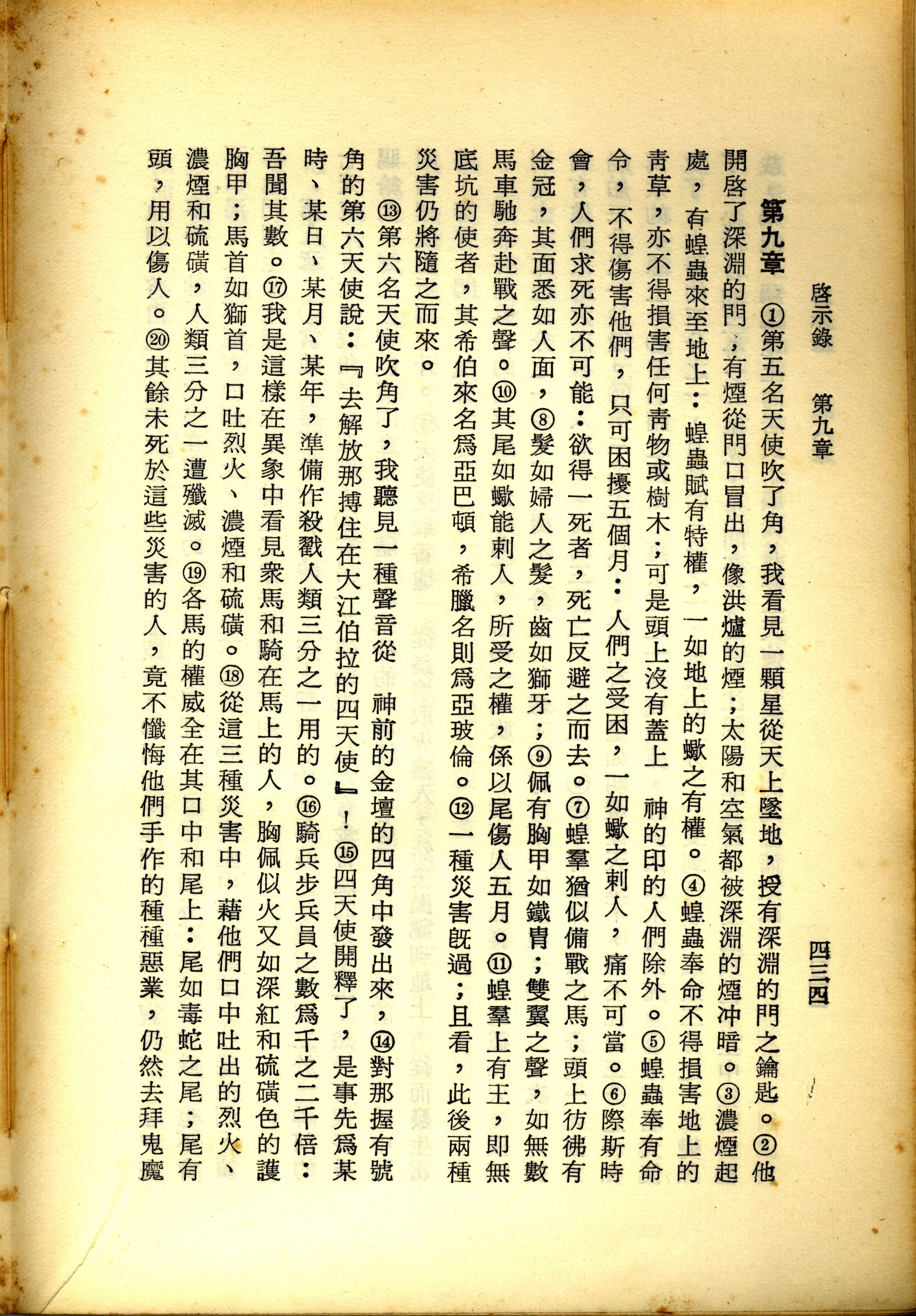 1967年新译新约全集 启示录 9 章 1 节到 9 章 20 节