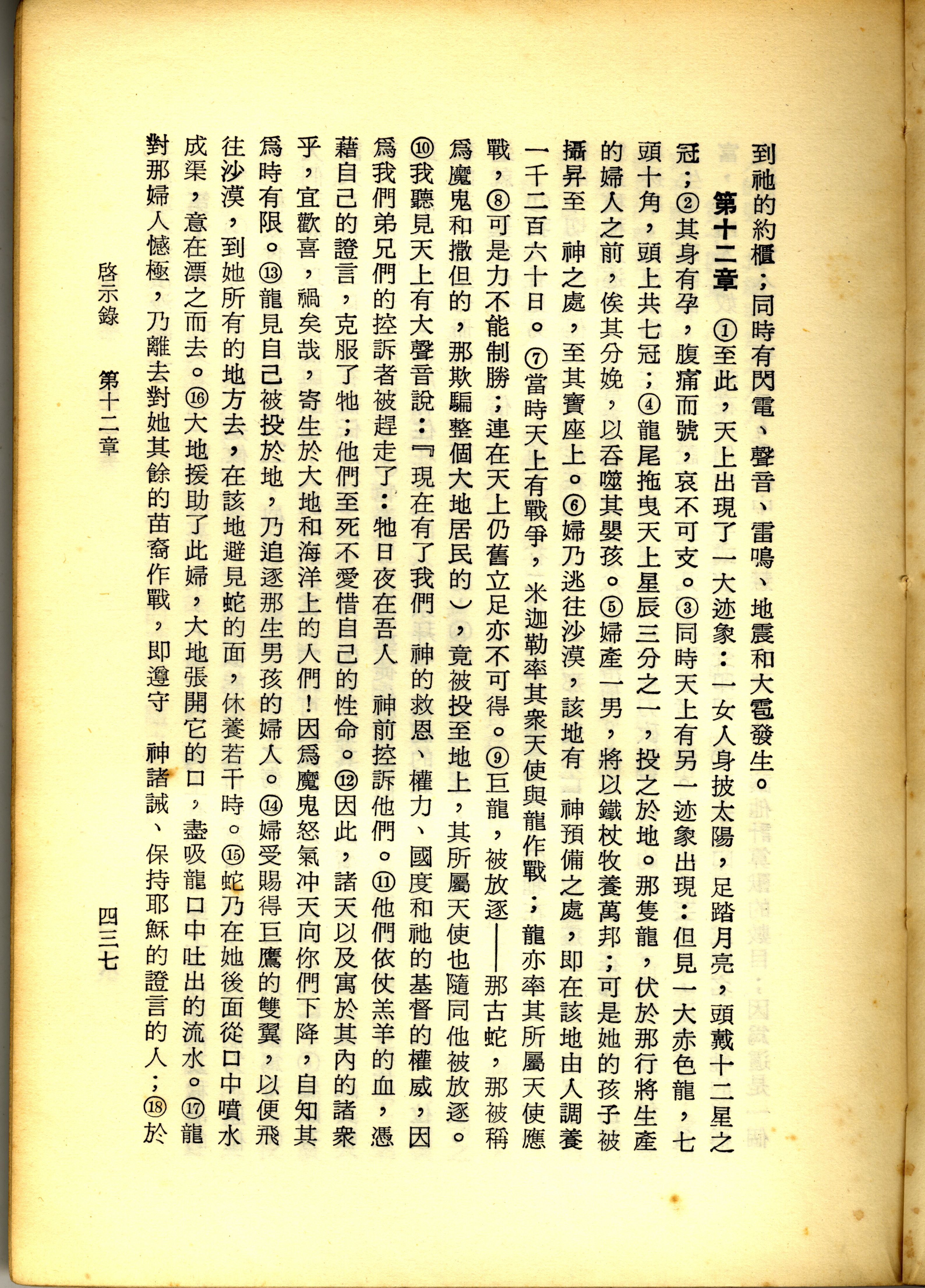 1967年新译新约全集 启示录 12 章 1 节到 12 章 18 节